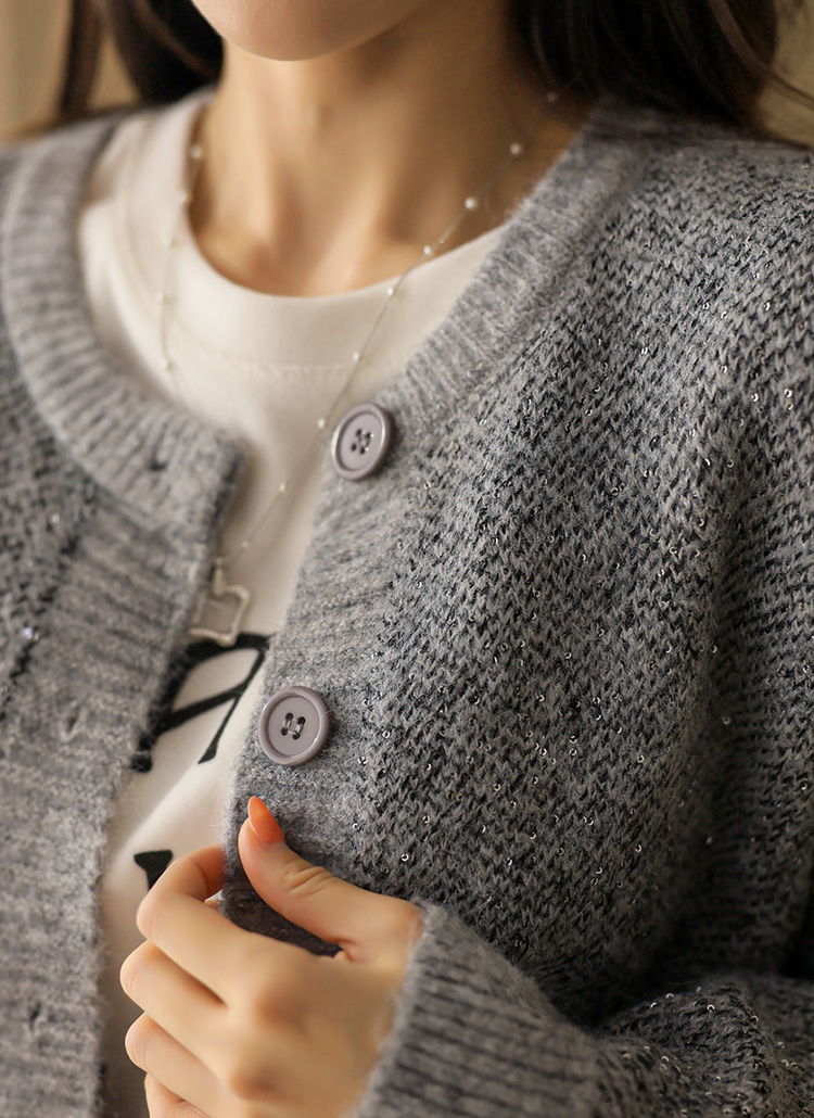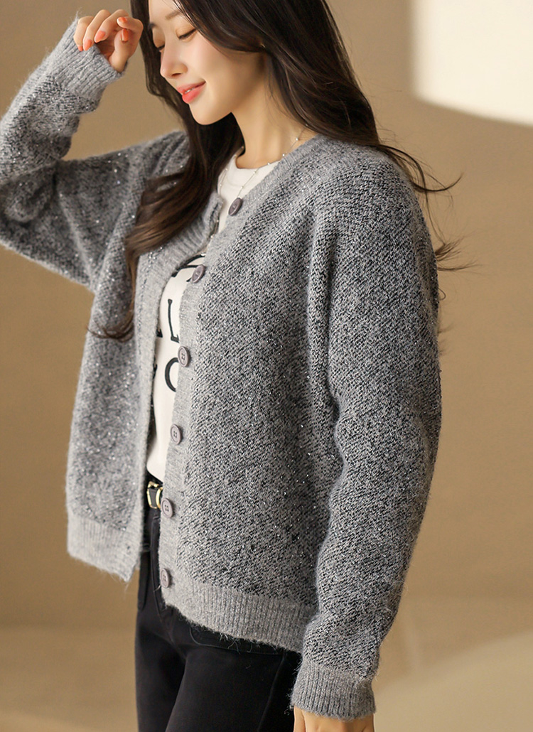 펄 스팽글 믹스 보카시 니트 가디건이에요