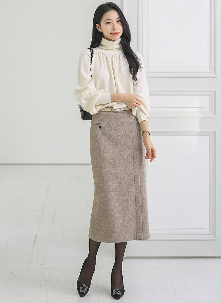 차분하면서도 고급스러운 분위기가 느껴지는 H라인 스커트예요 :)