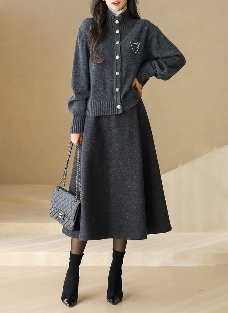 포근함과 여성스러움을 동시에 담은 A라인 롱 스커트에요