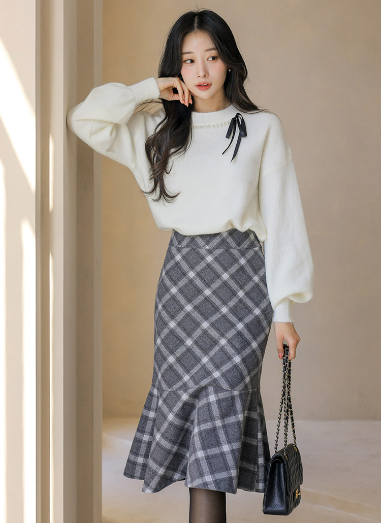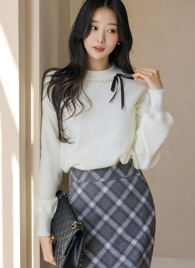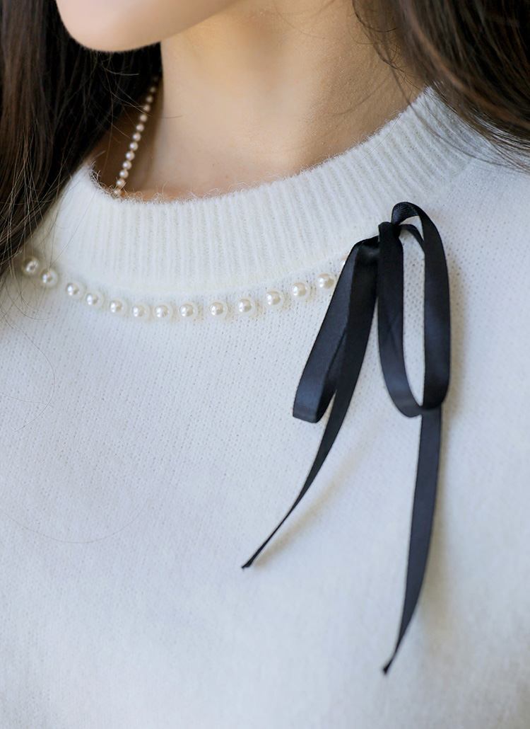 진주와 리본 디테일로 사랑스러움을 더한 니트에요
