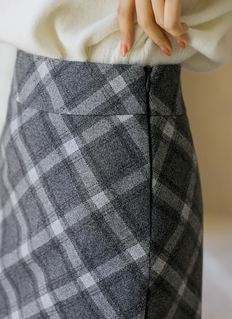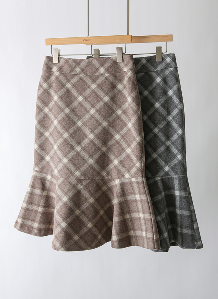 제블린 타탄 체크 머메이드 라인 롱 스커트