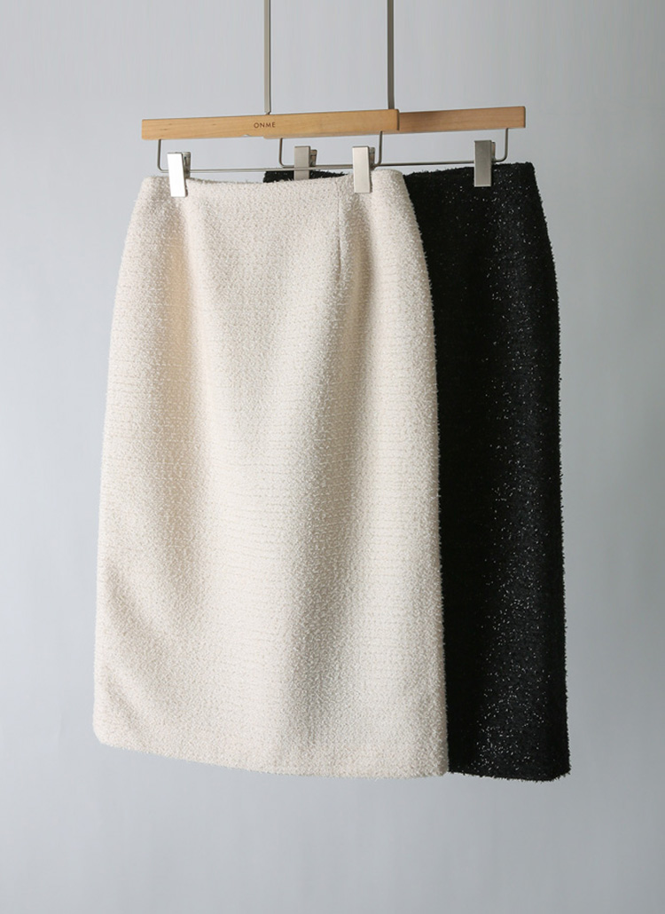 미엔느 완벽 슬림 H라인 펜슬 미디 펄 트위드 스커트