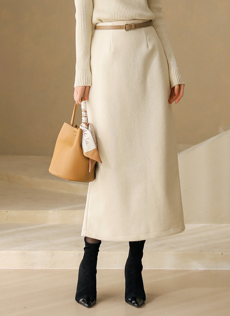부드럽고 아늑한 분위기의 겨울룩을 선사하는 H라인 롱 스커트에요