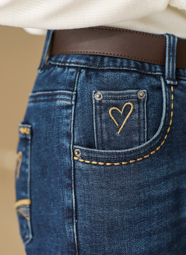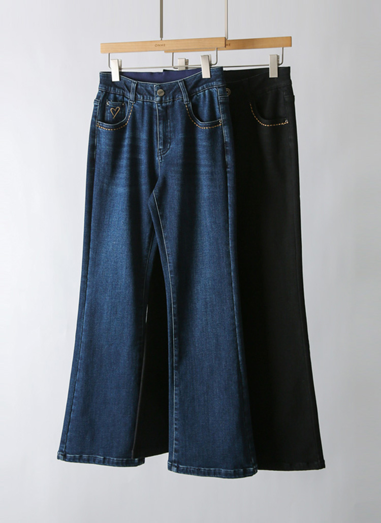 하이엇 골든 스티치 미니 하트 자수 기모 안감 부츠컷 데님 팬츠
