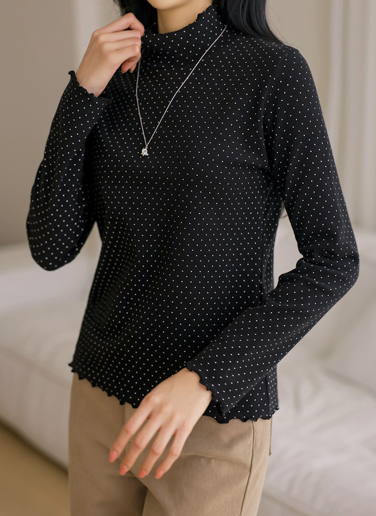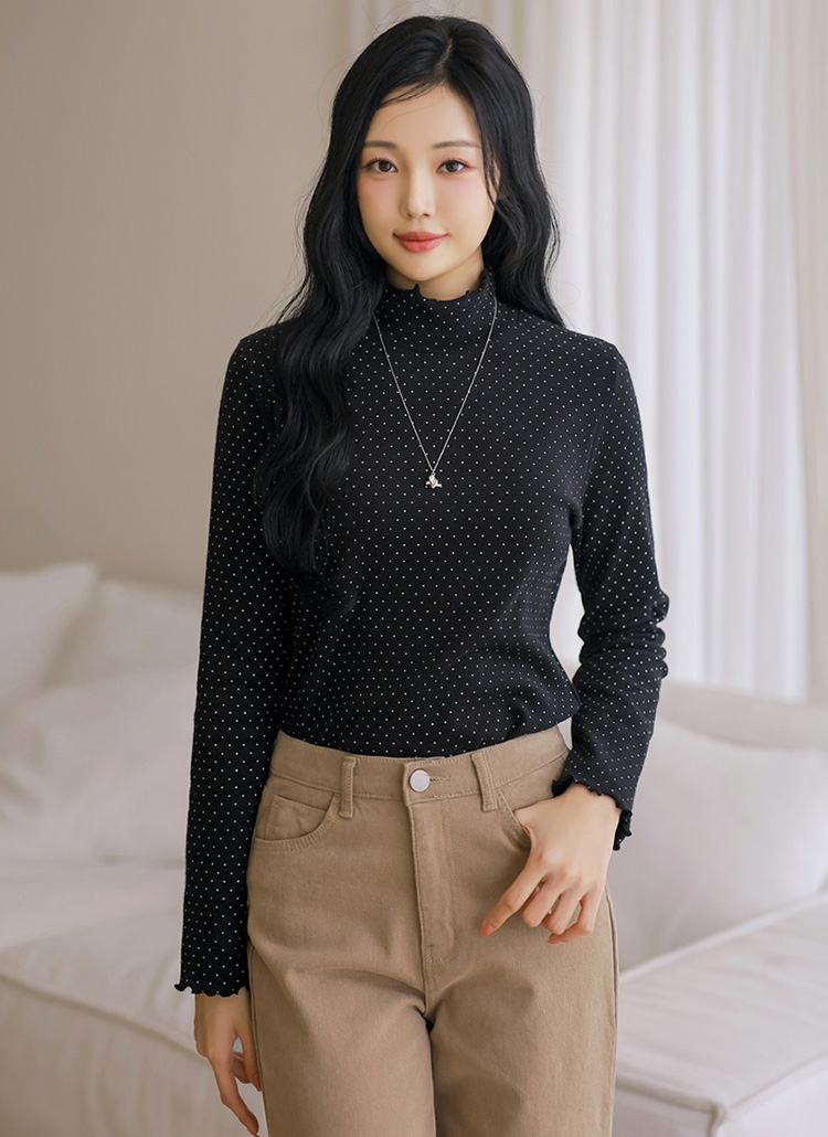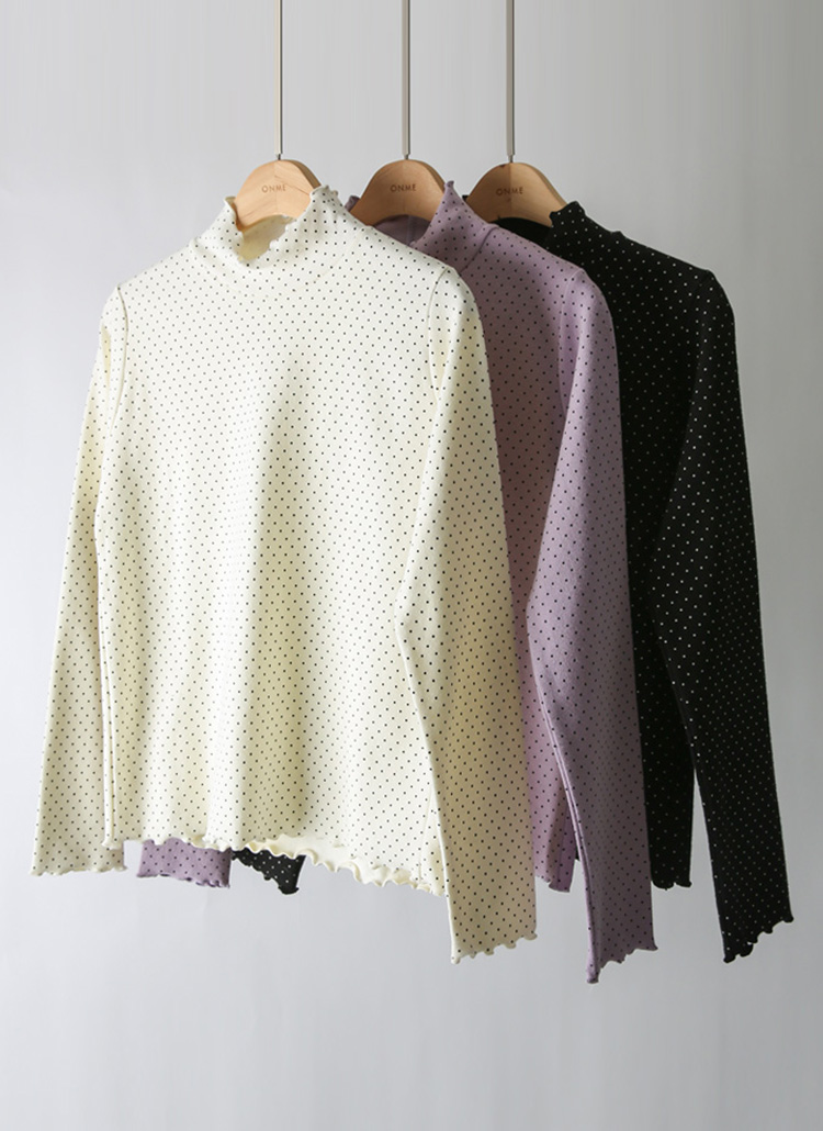 [Theonme] 온리프 도트 피치기모 러플 폴라 티셔츠