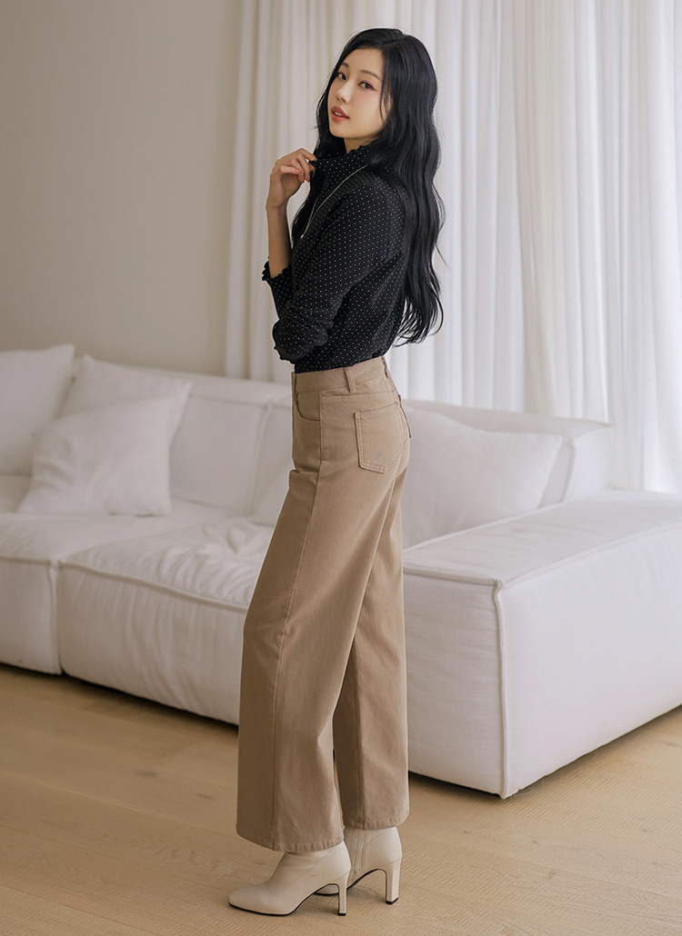 무릎 아래로 와이드하게 퍼지는 세미와이드 핏으로