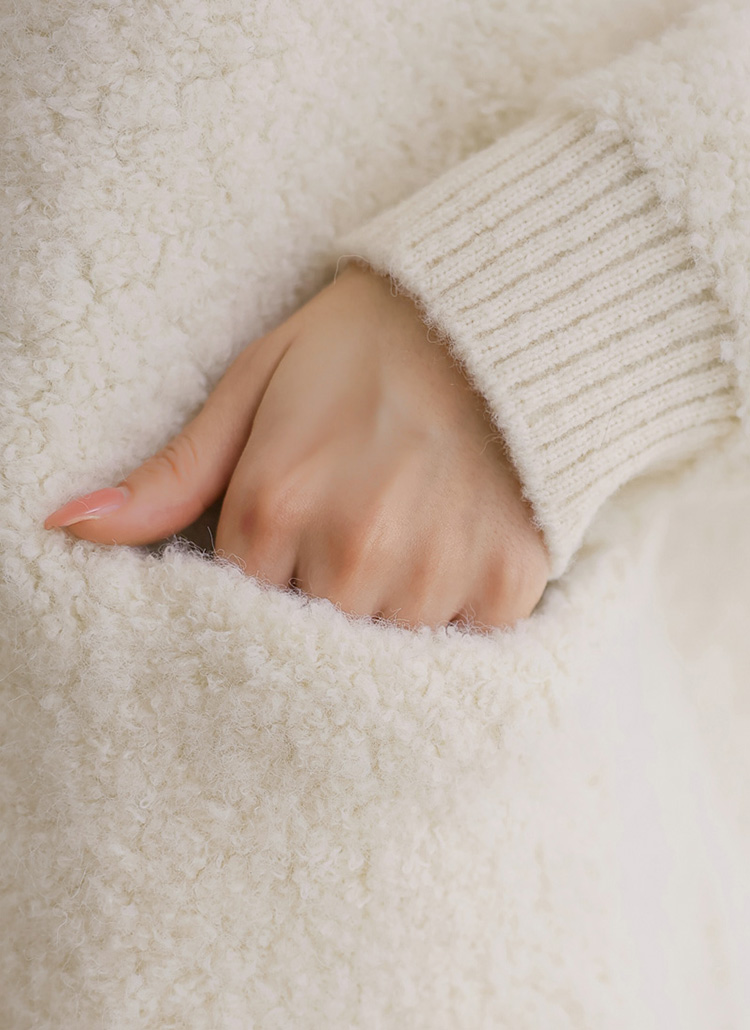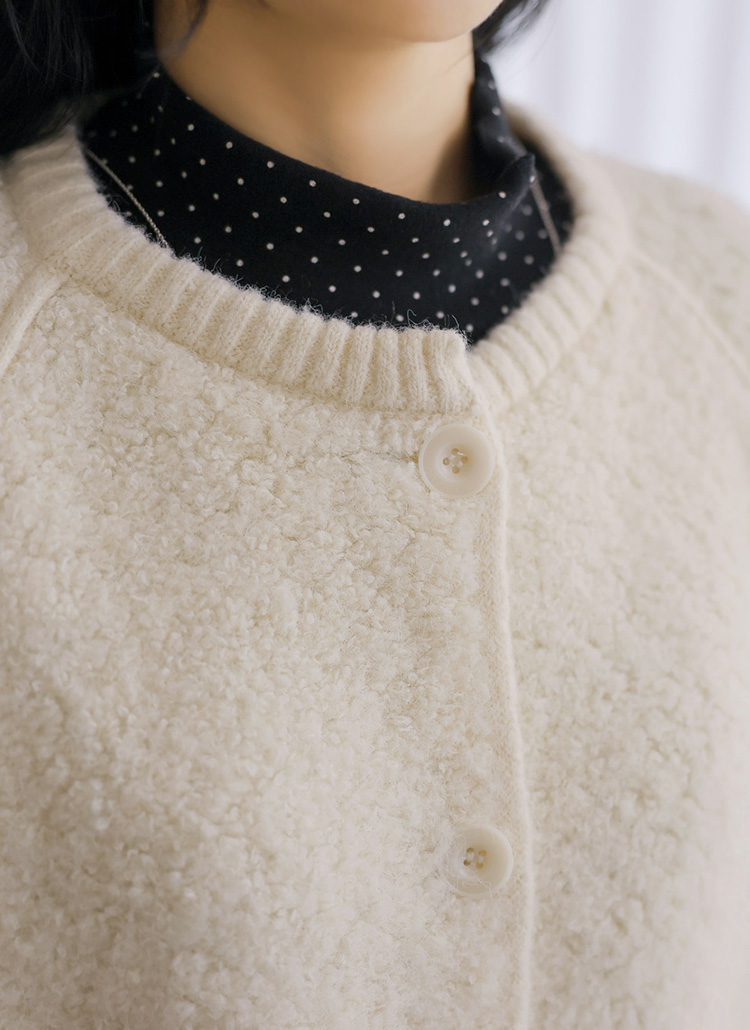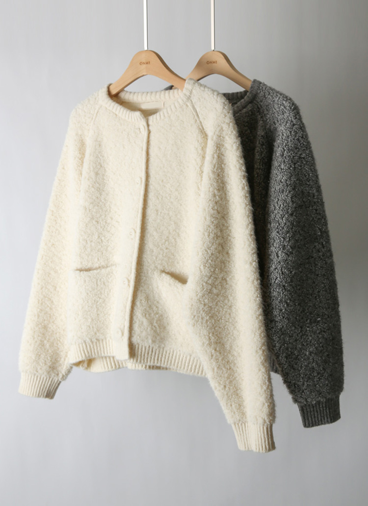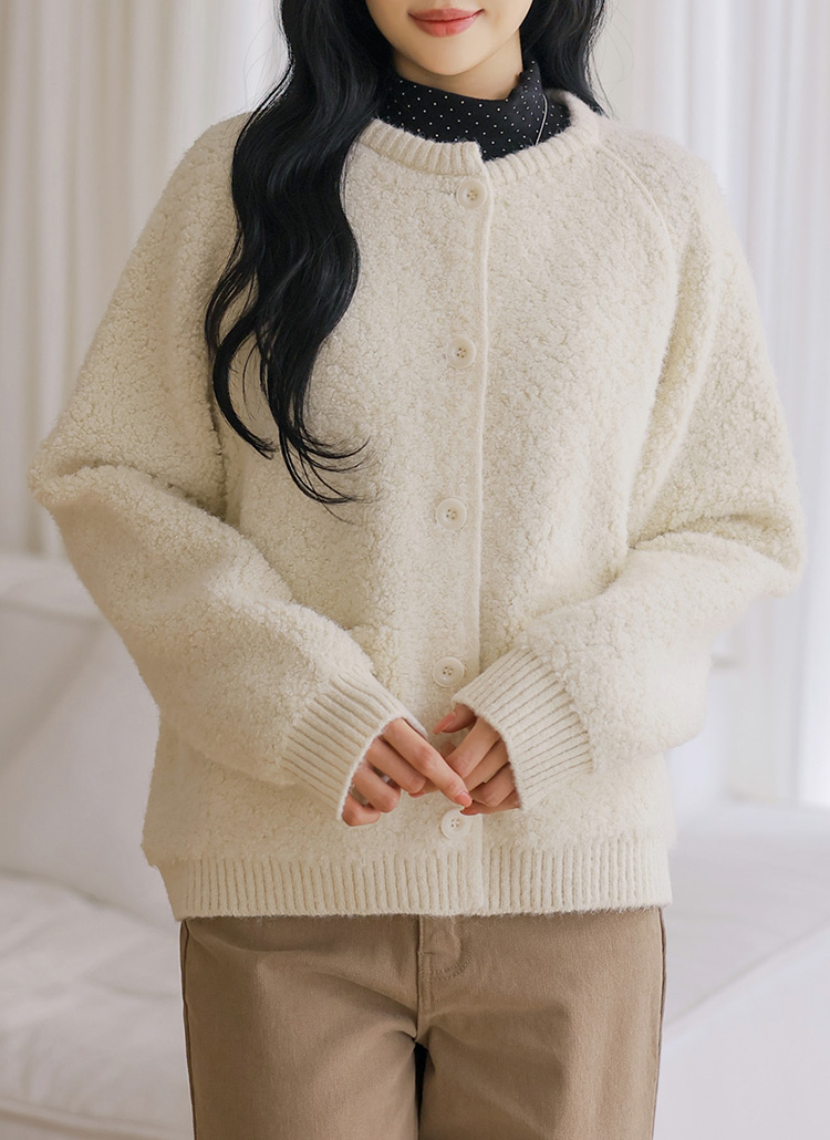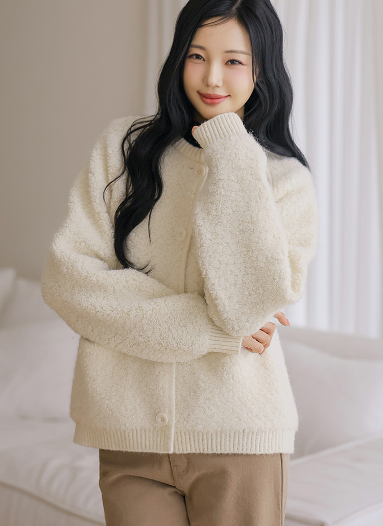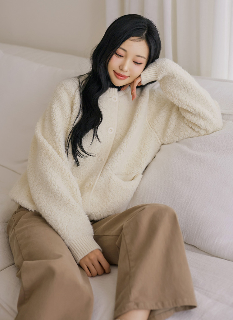 [Theonme] 에린트 도톰 뽀글 양털 시보리 라운드 니트 가디건