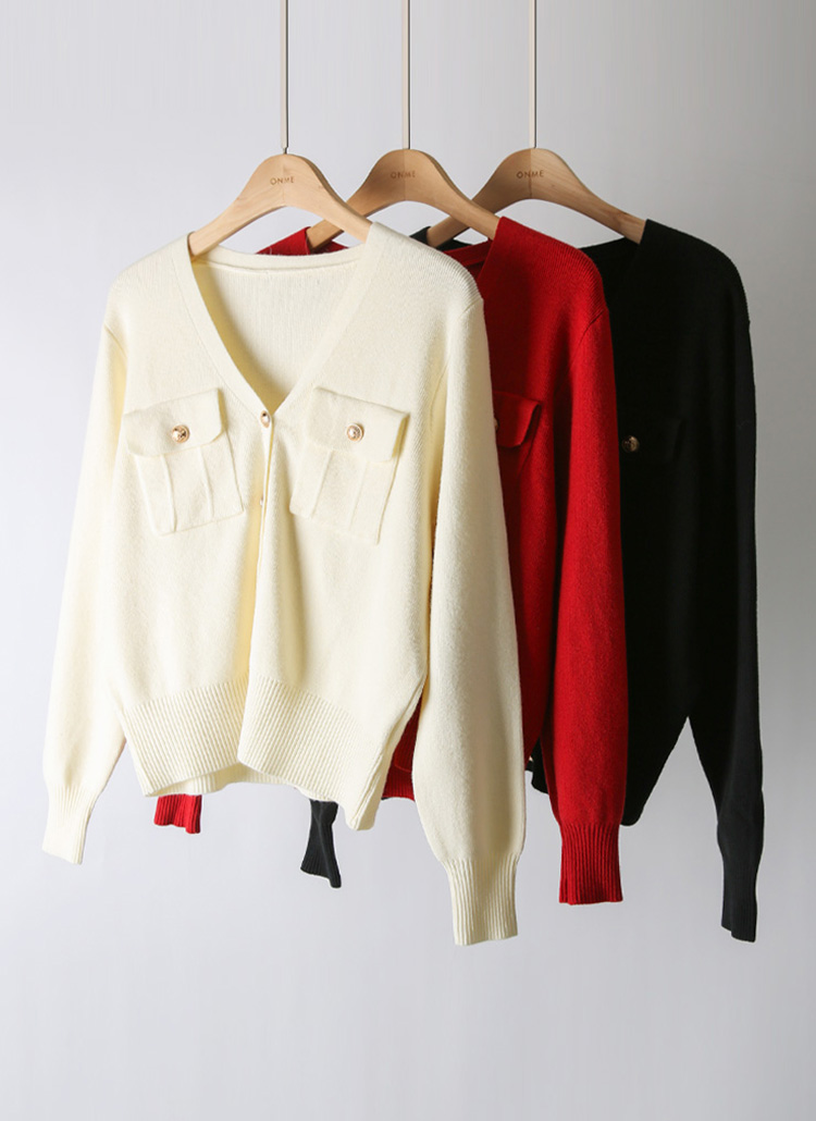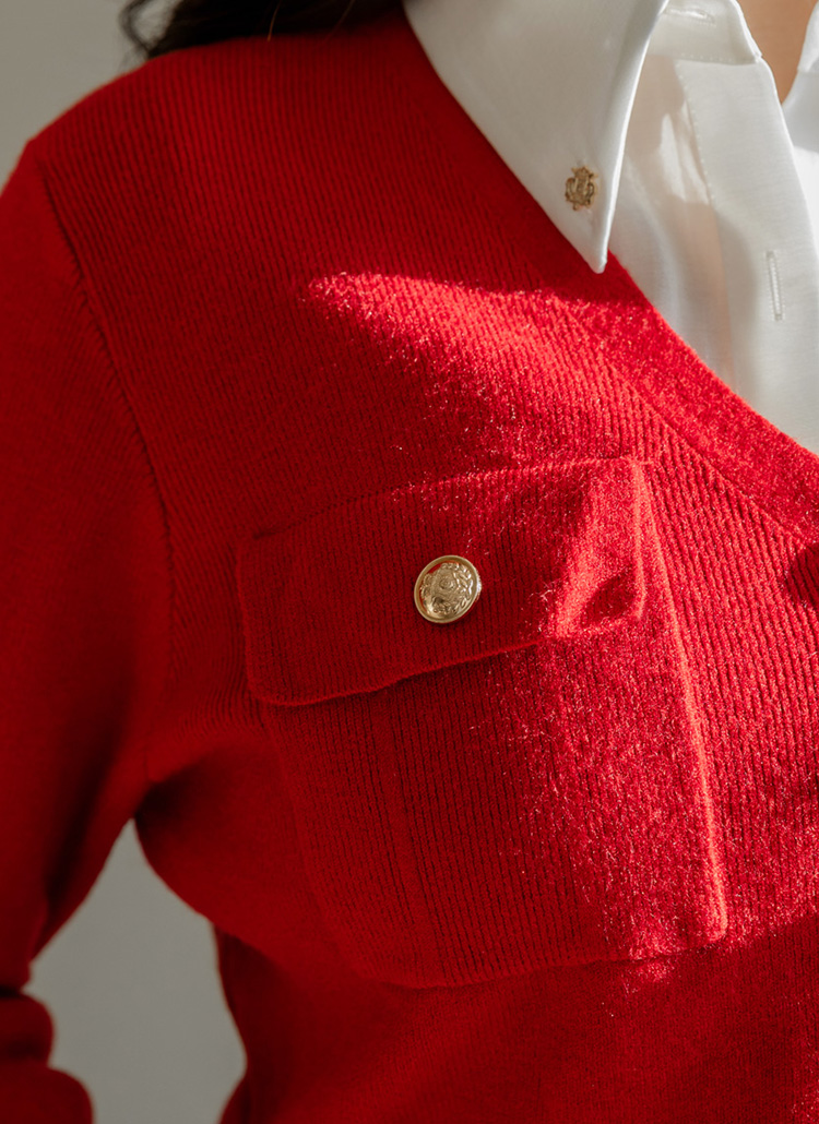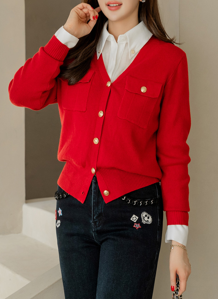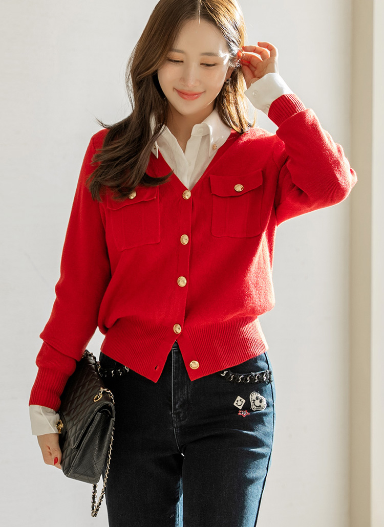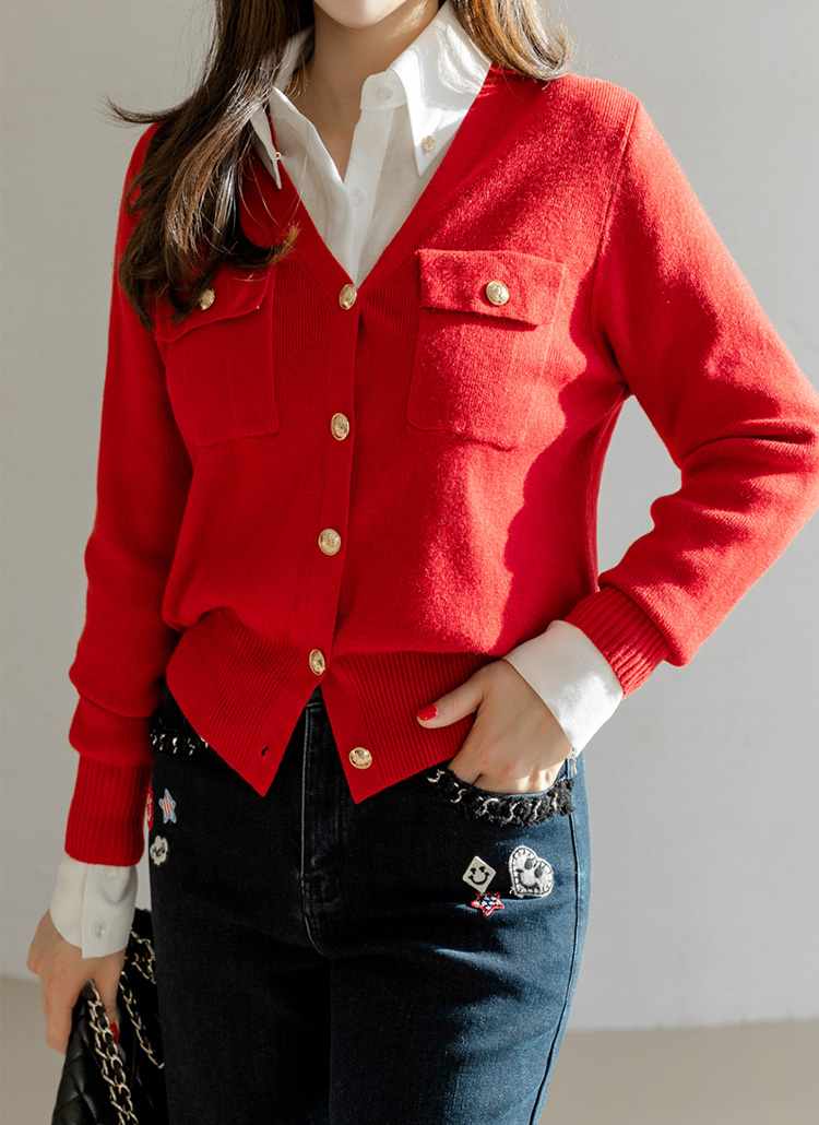 단정한 실루엣 속에 우아하고 고급스러운 포인트를 더한 V넥 니트 가디건이에요
