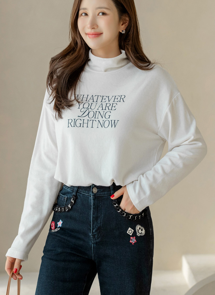벨리에 말랑 보들보들 앙고라 블렌딩 영문 레터링 폴라 하이텍 티셔츠