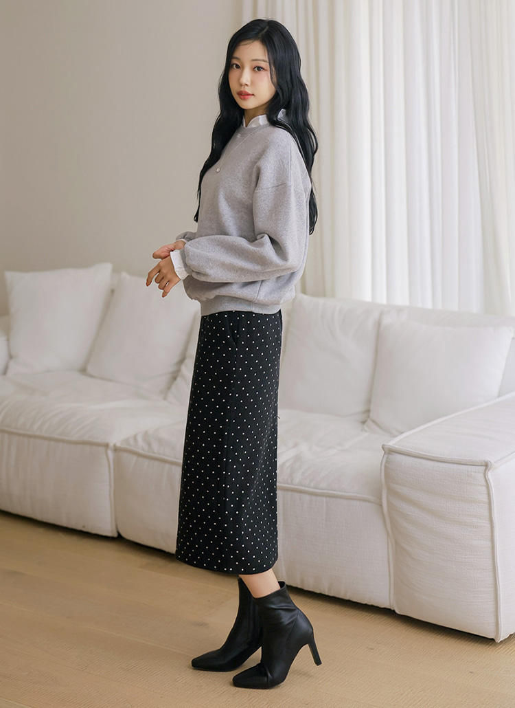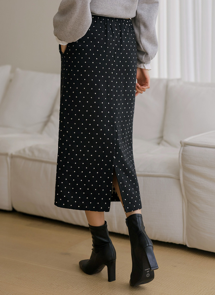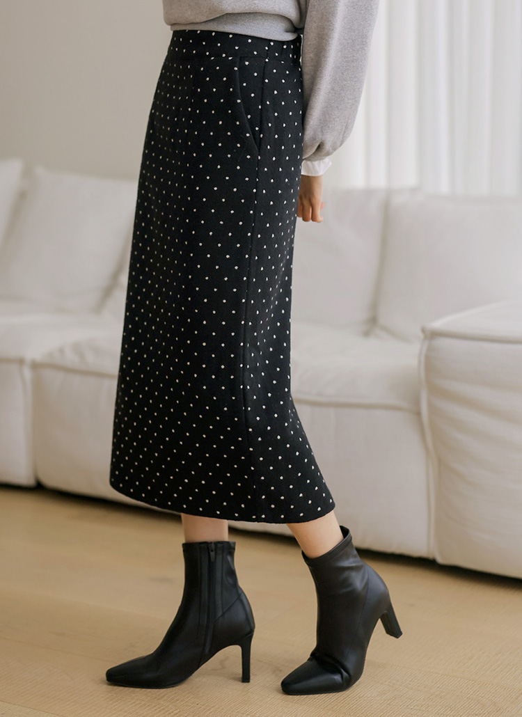 [Theonme] 시즈엘 톡톡 울 도트 뒷밴딩 H라인 스커트