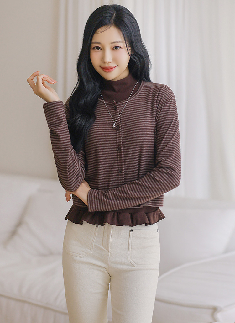 스트라이프 가디건과 프릴 폴라 이너가 세트로 구성된 아이템이에요 :)