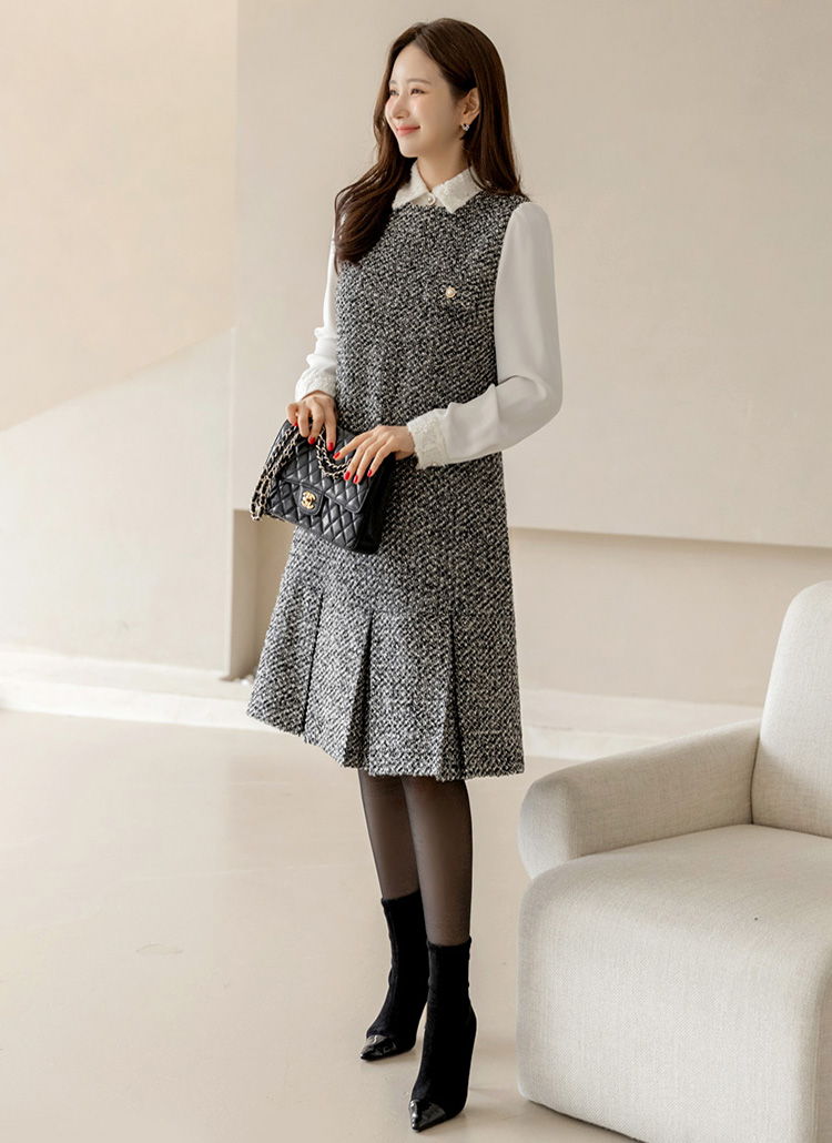 트위드 특유의 고급스러움이 조화롭게 어우러진 매력만점 원피스에요