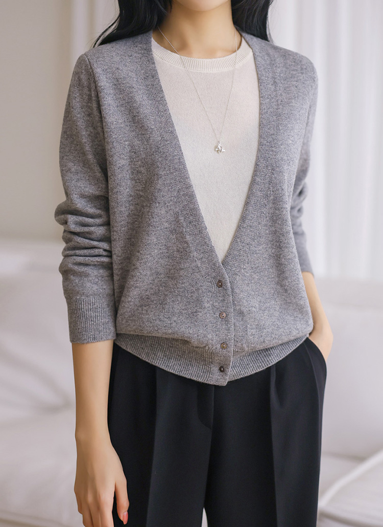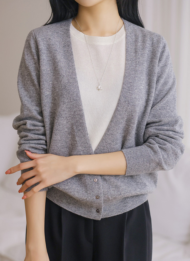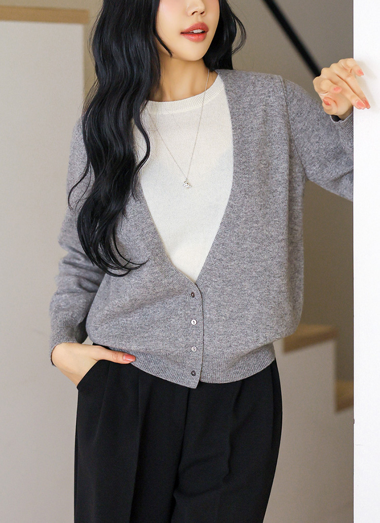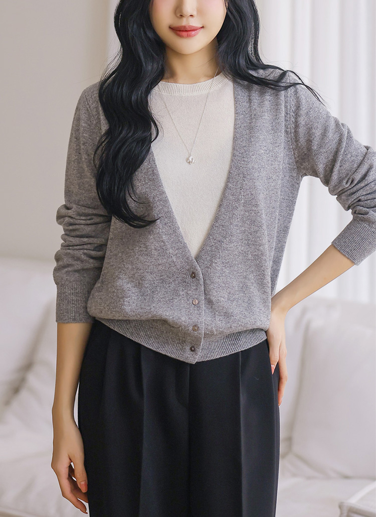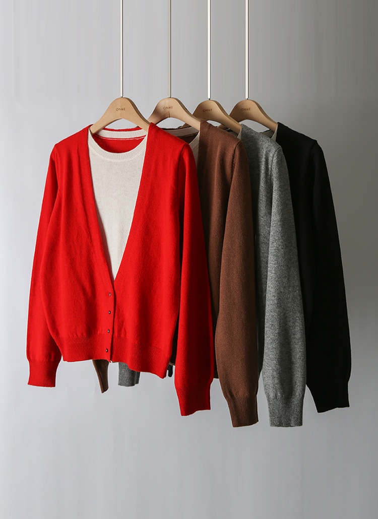 [Theonme] 리아트 울 배색 가디건 레이어드 니트