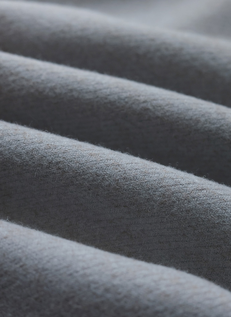 울이 블렌딩 된 도톰한 모직 소재로 제작되어