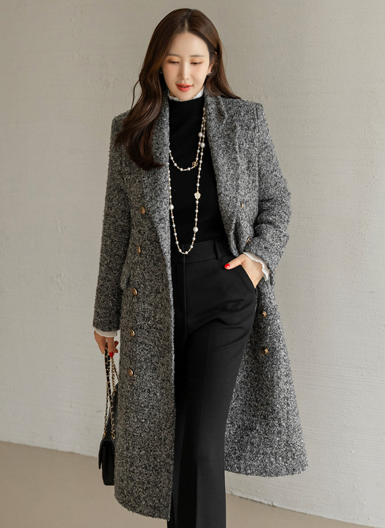 입는 순간 자연스럽게 격이 다른 분위기를 완성해주는 부클 롱 코트에요