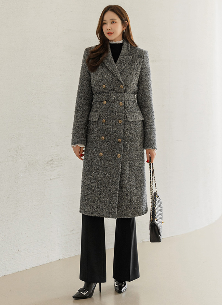 엔디스 벨트SET 울 블렌딩 보카시 부클 더블 롱 테일러드 코트