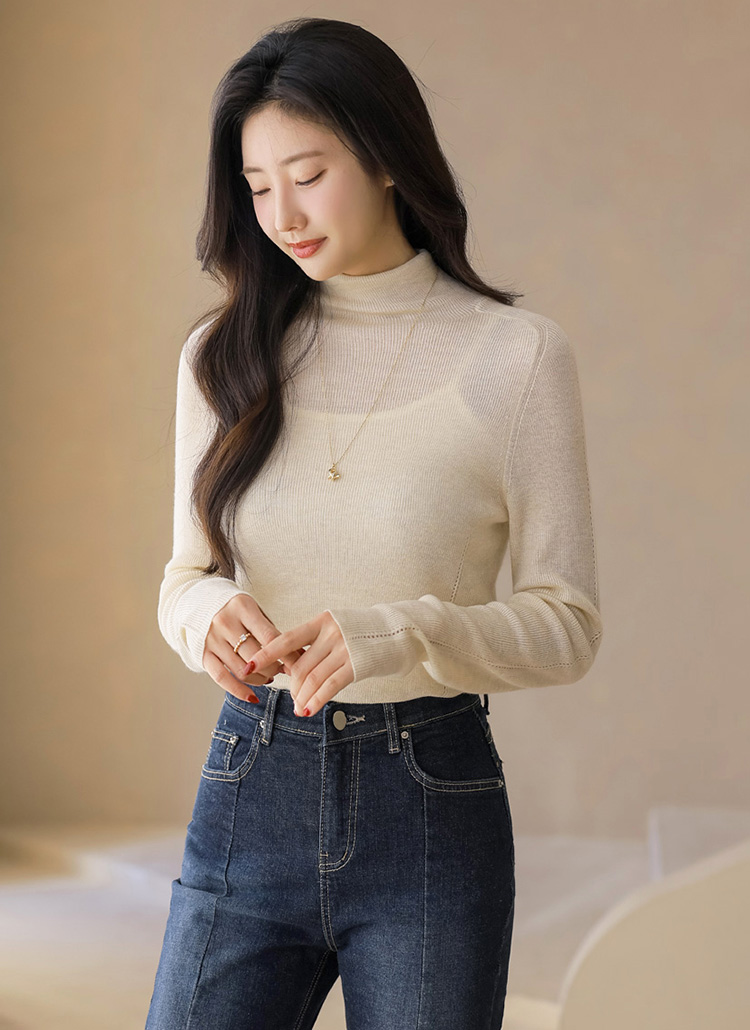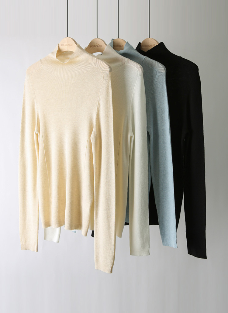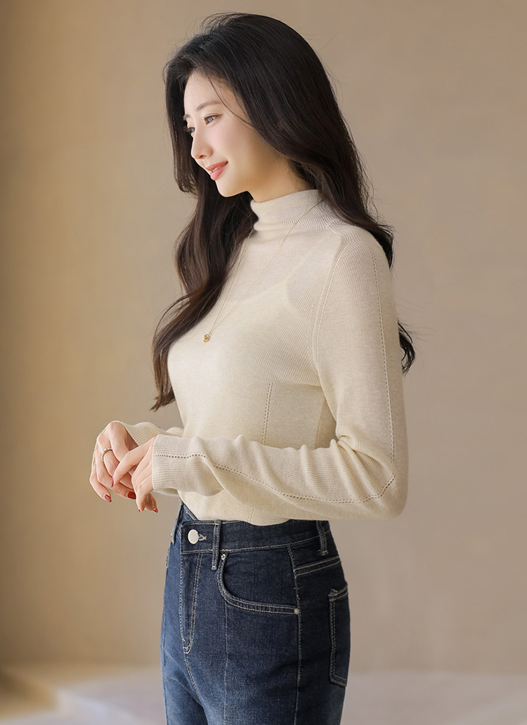비올르 펀칭 라인 라이트 울 여리 슬림 폴라 니트