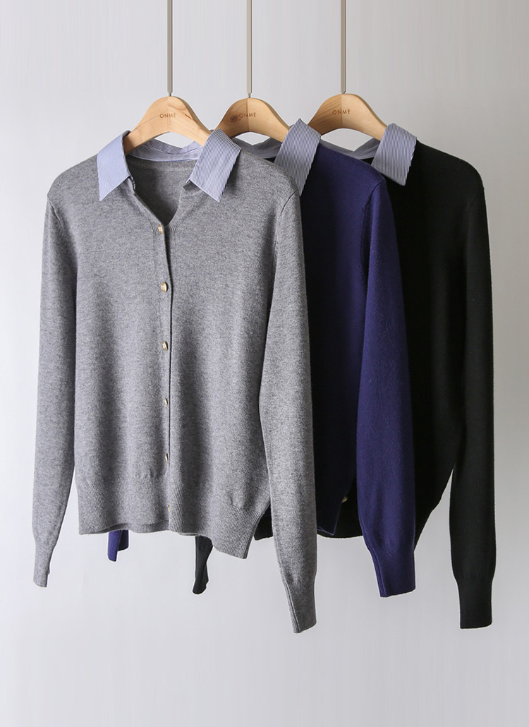 델리오 스트라이프 카라 배색 니트 가디건