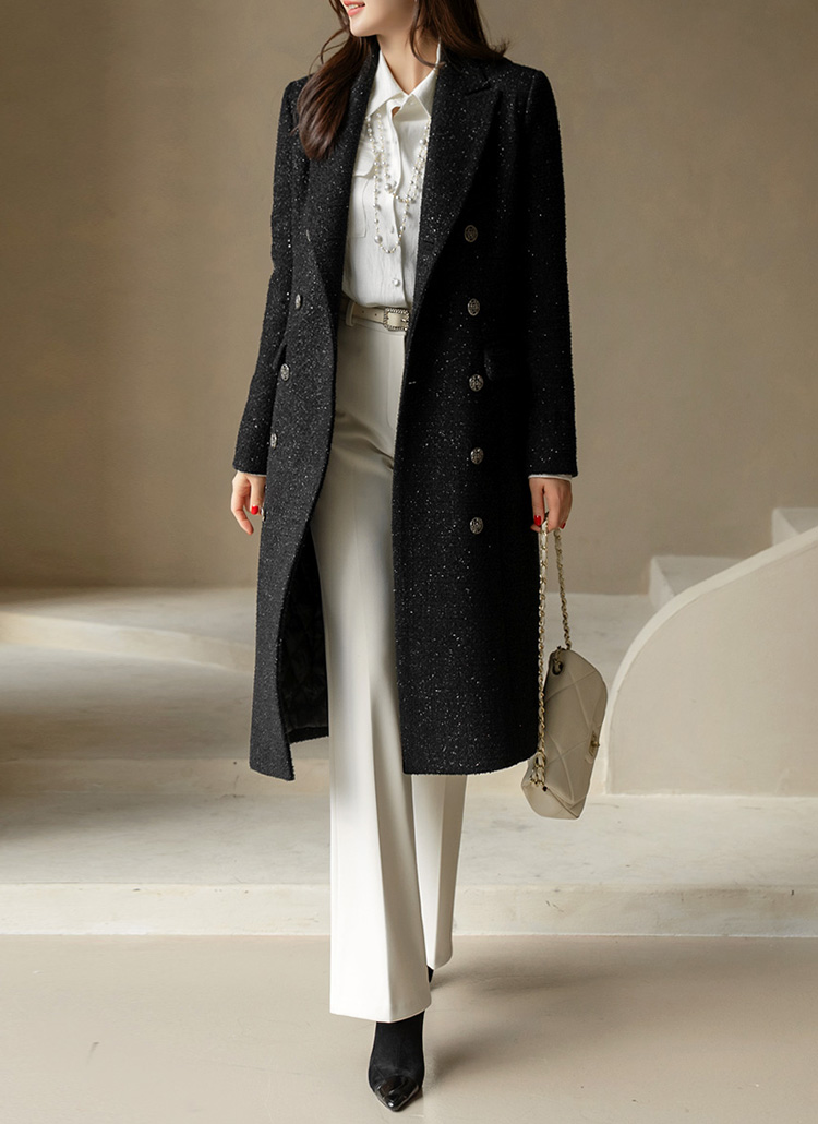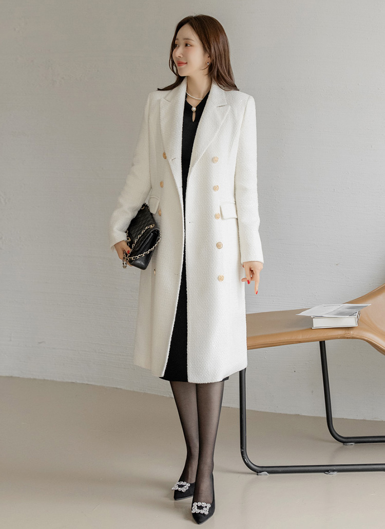 화사하고 럭셔리한 존재감을 자랑하는 더블 롱 코트에요