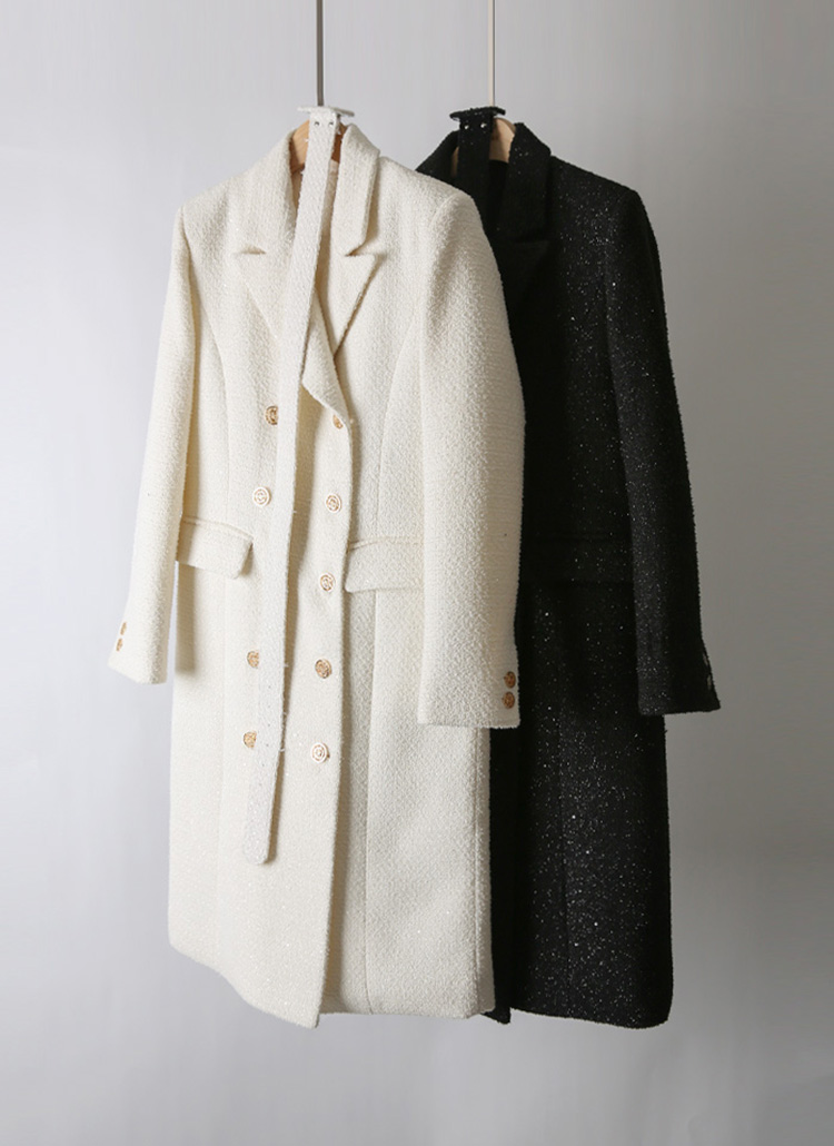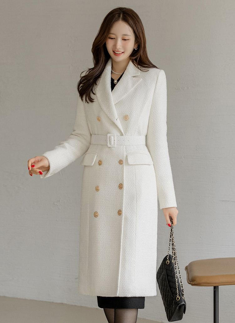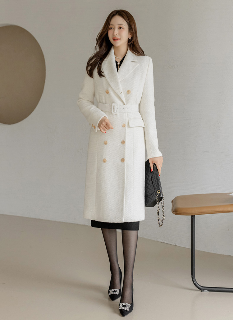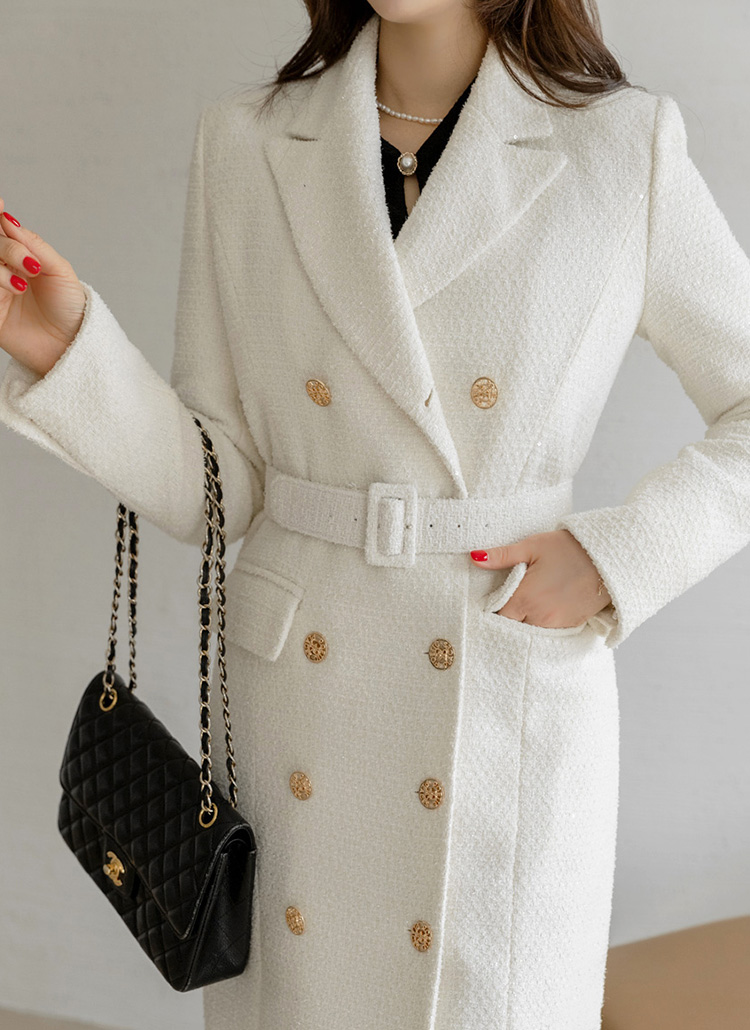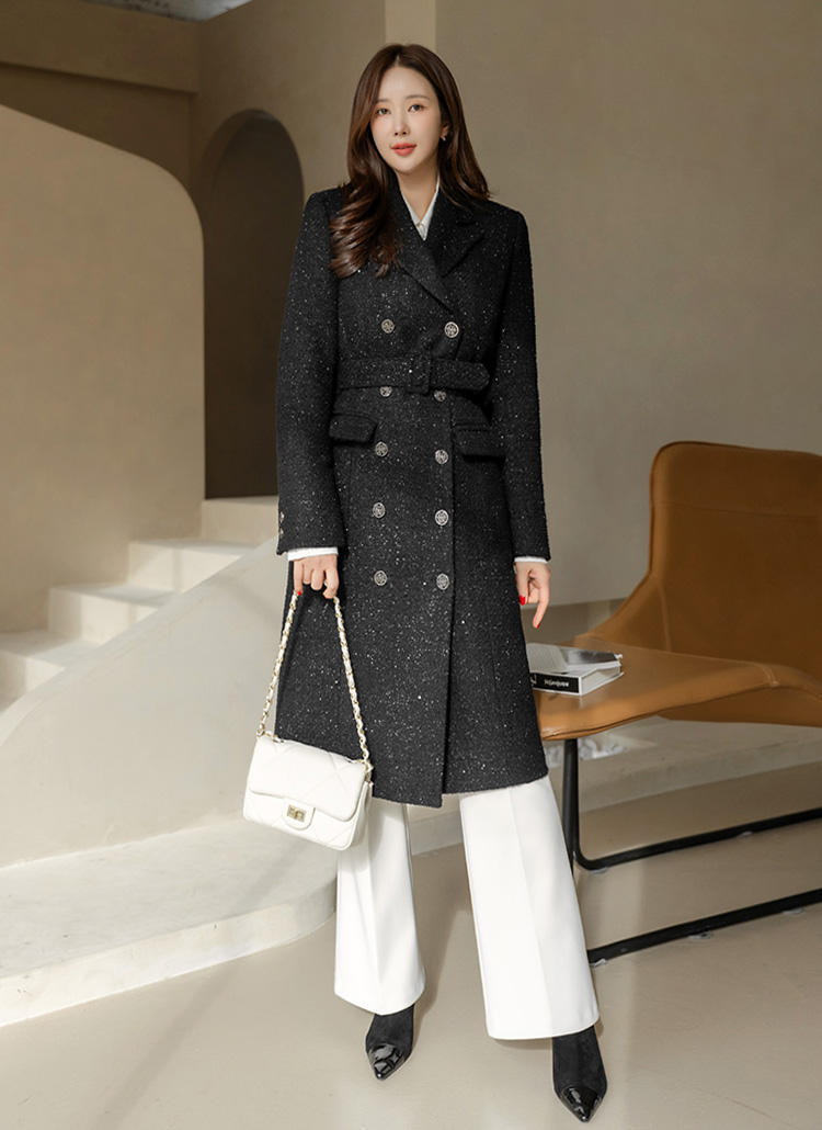 케일리 벨트SET 샤인 글로시 울 블렌딩 트위드 롱 더블 코트