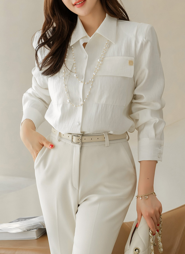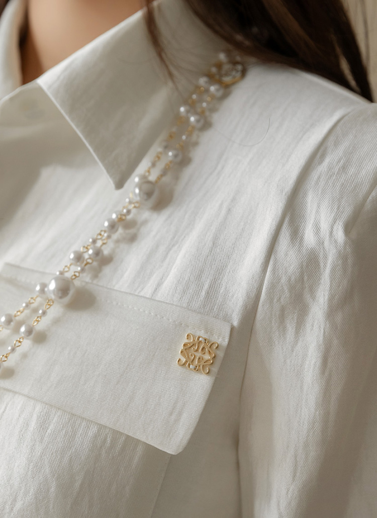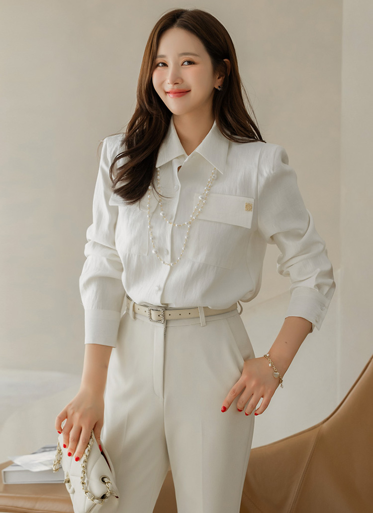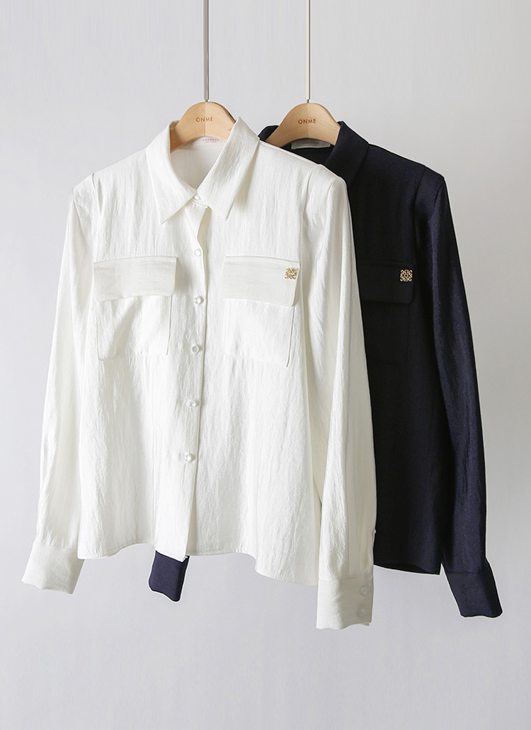 메이렌 골드 버튼 포인트 포켓 카라 블라우스
