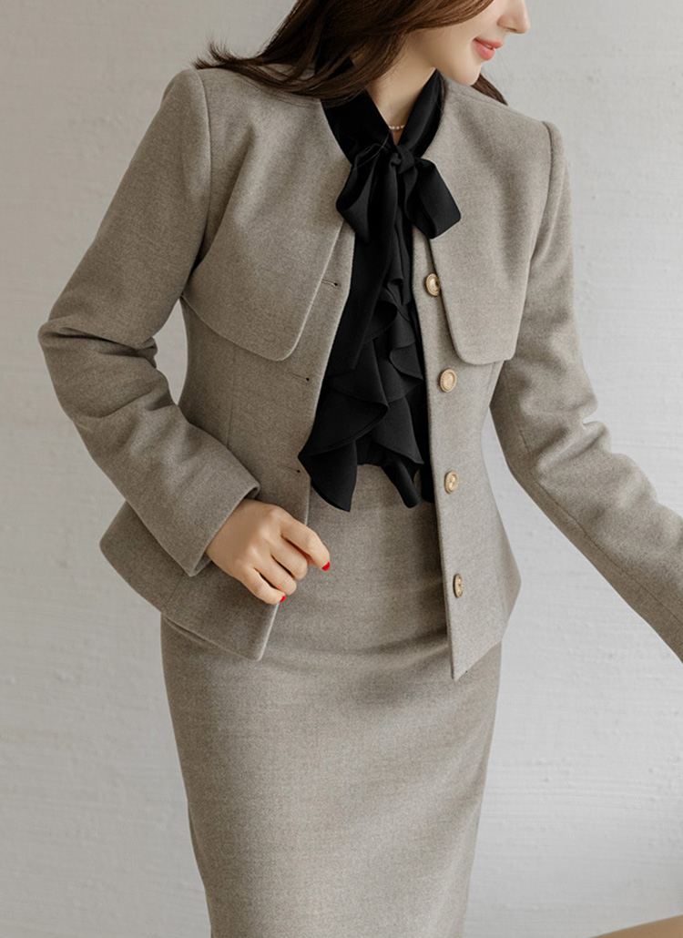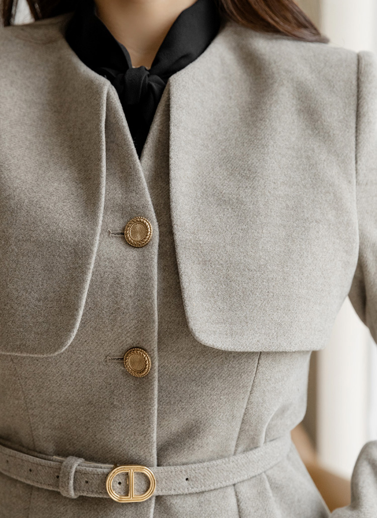 세라렌 벨트SET 울 블렌딩 모직 노카라 페플럼 자켓
