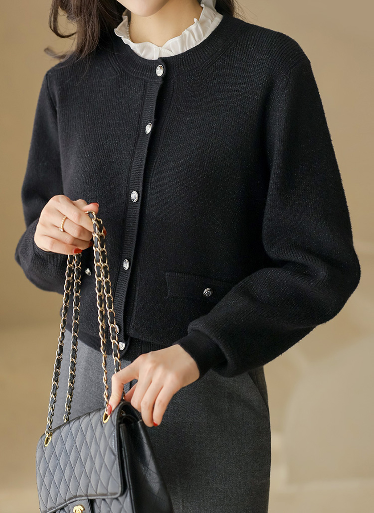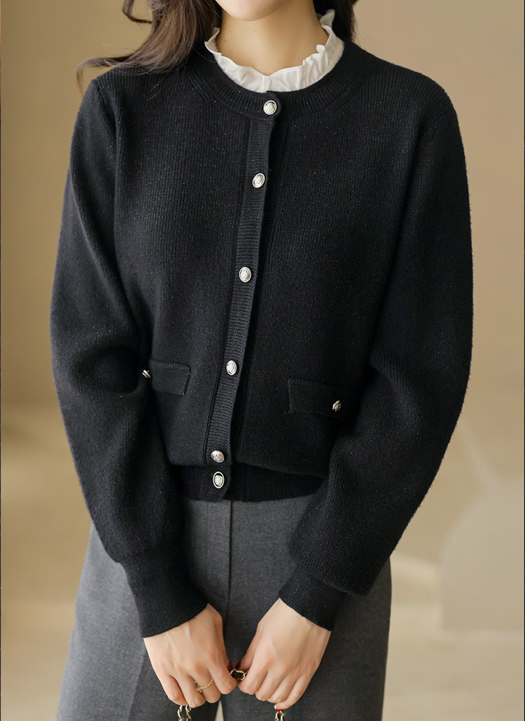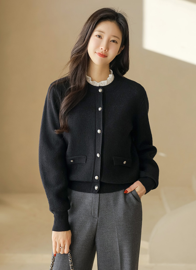 글리드 펄 블렌딩 볼드버튼 라운드 니트 가디건