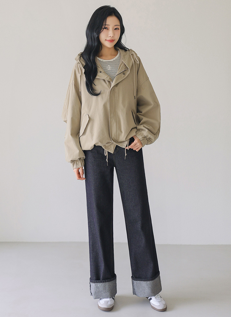 밑단과 후드 스트링으로 취향에 맞게 핏 조절이 가능합니다