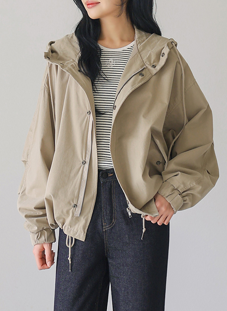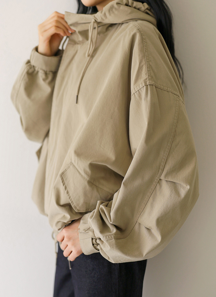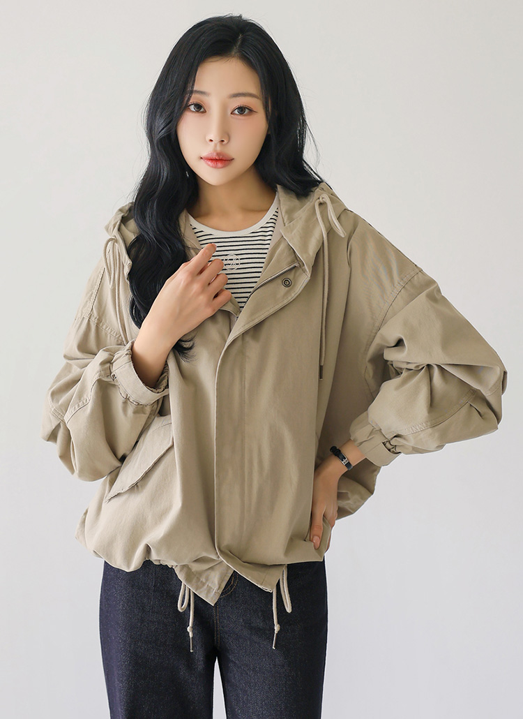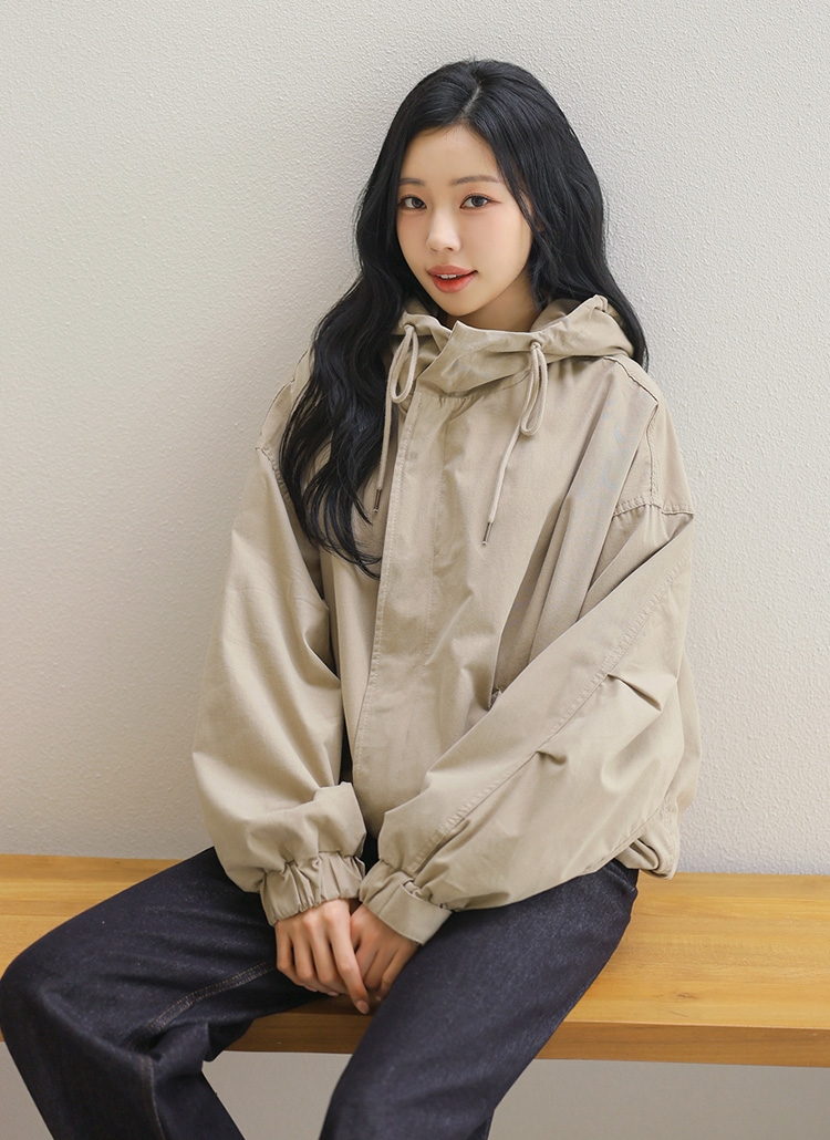 [Theonme] 리테드 루즈핏 핀턱소매 하이넥 후드 숏 야상 점퍼