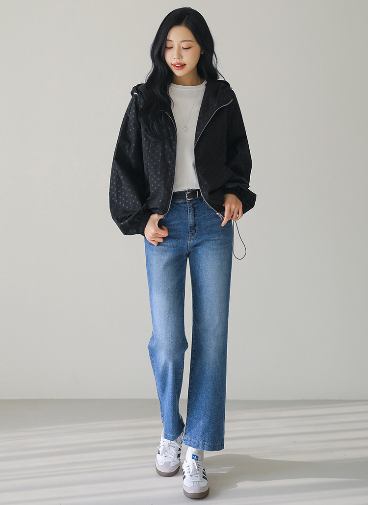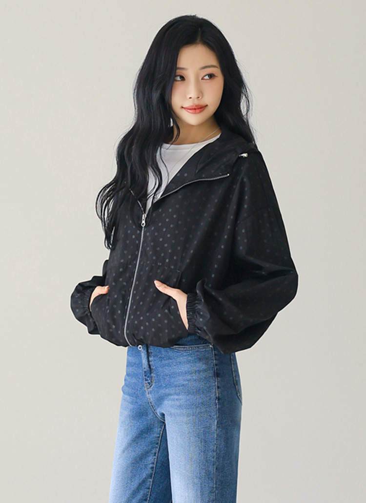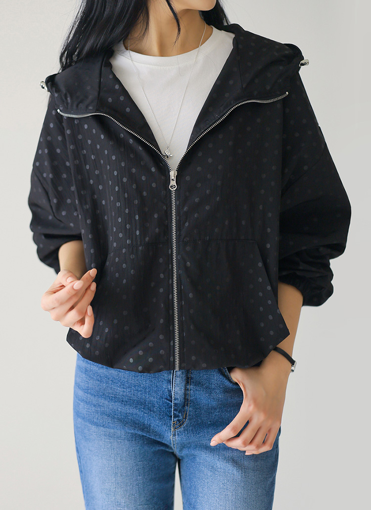[Theonme] 네디브 도트 나일론 하이넥 후드 집업 점퍼