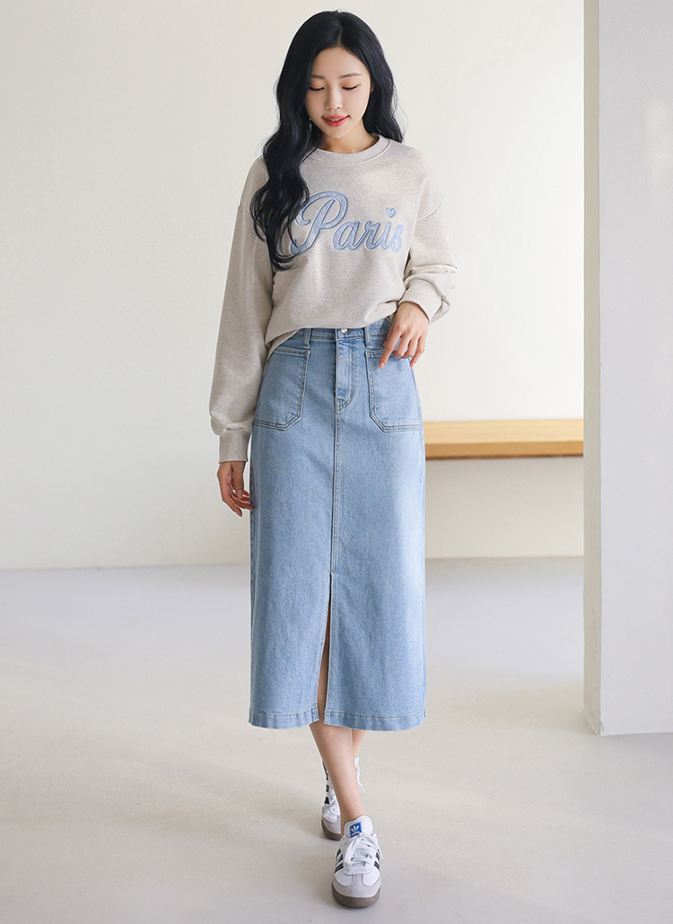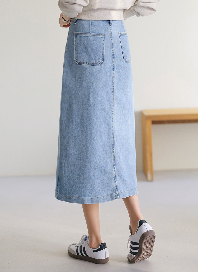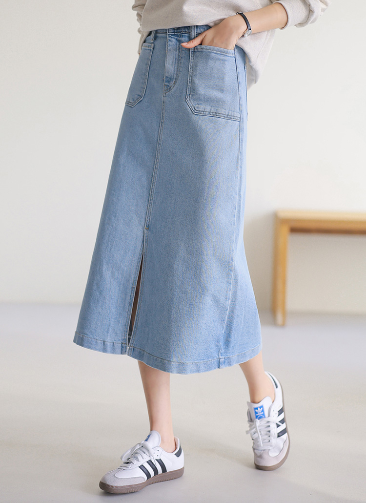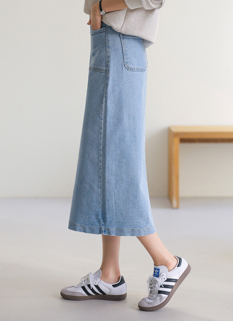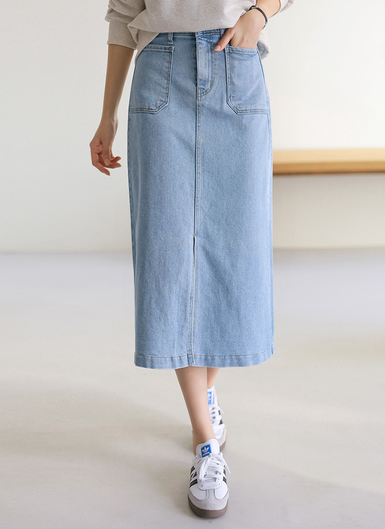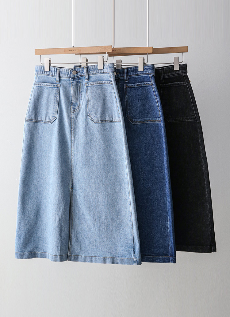 [Theonme] 트로인 빅포켓 앞절개 H라인 데님 스커트