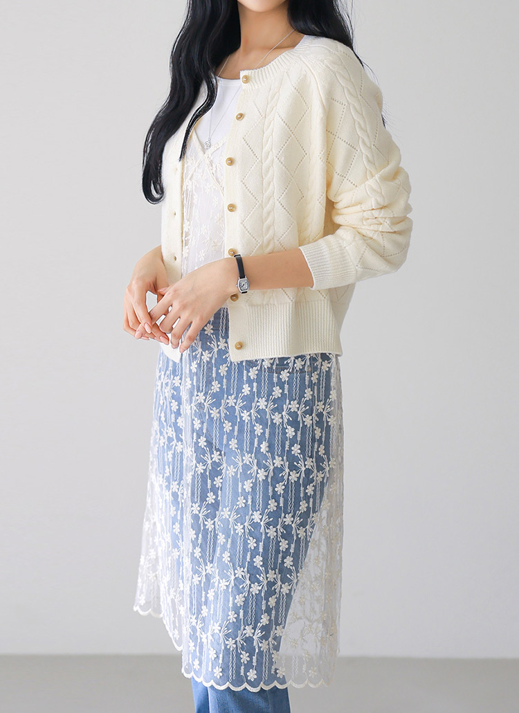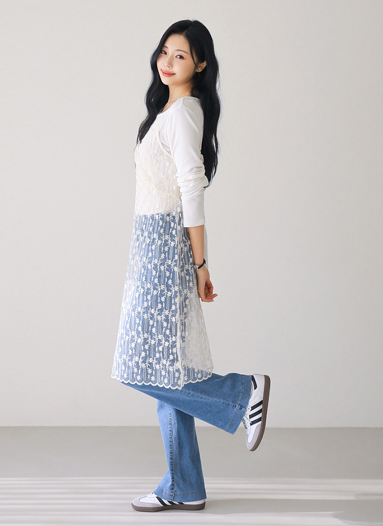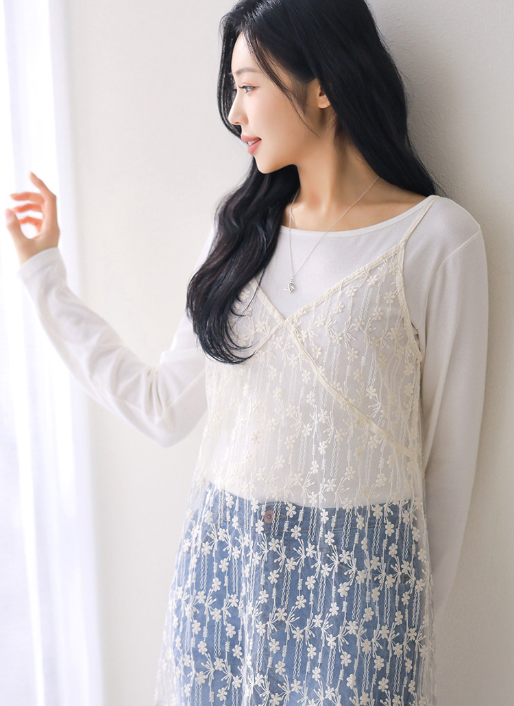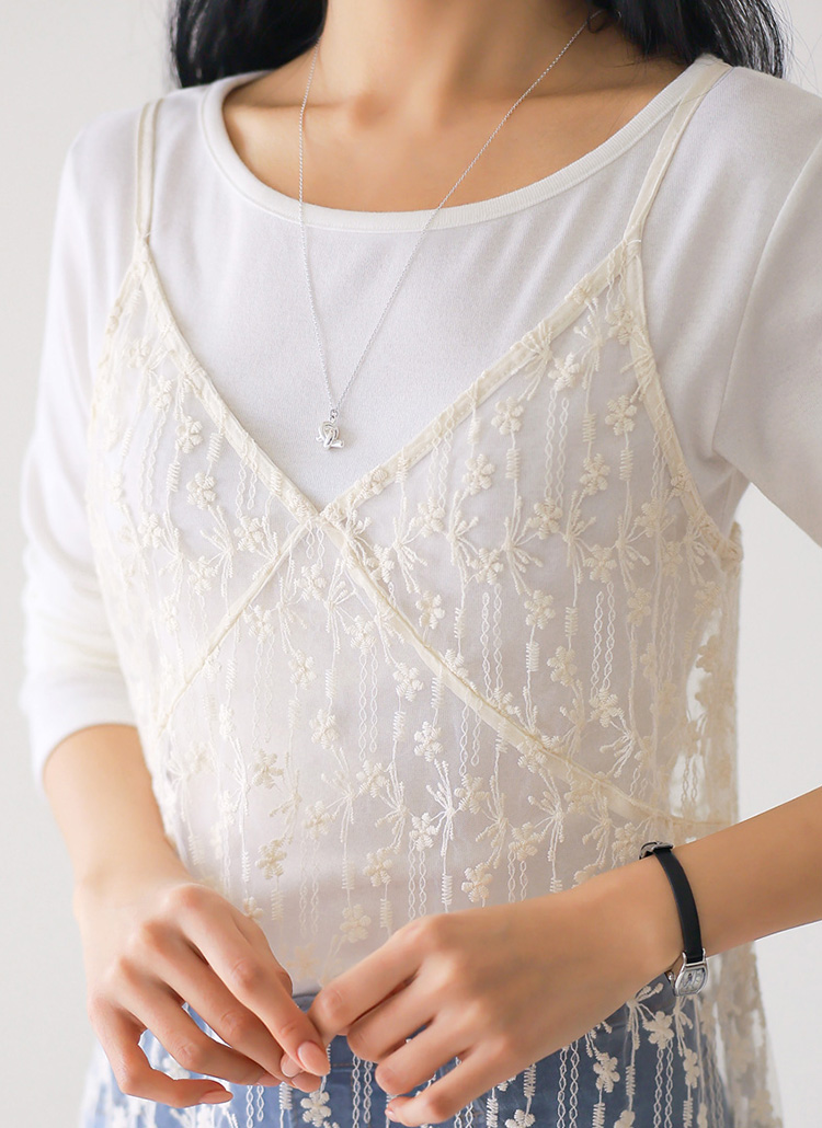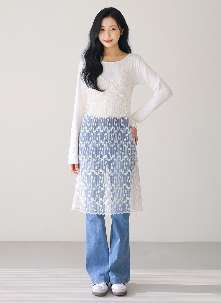 [Theonme] 엘리니 레이스자수 레이어드 뷔스티에 나시 원피스