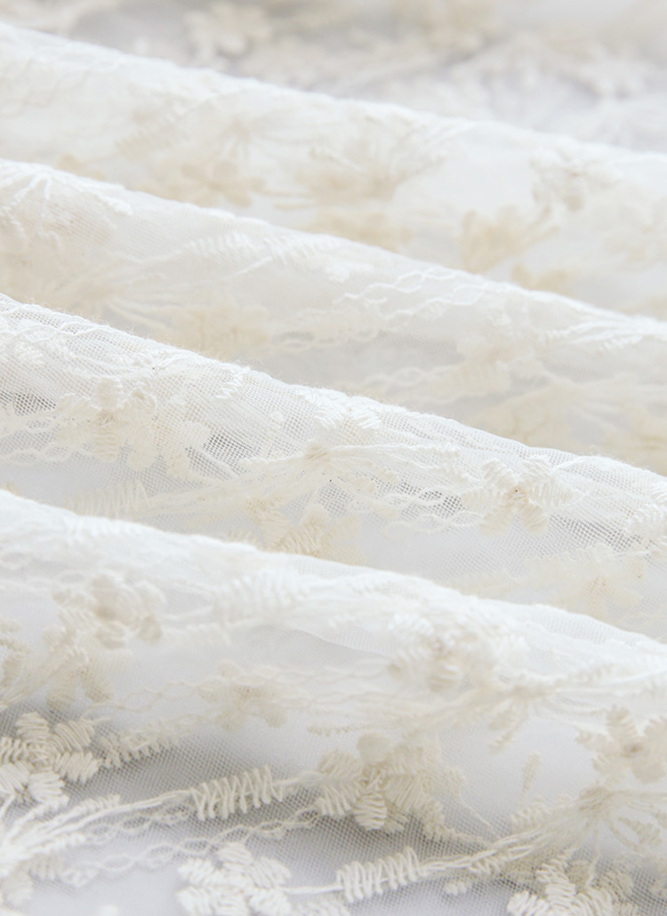 가볍고 드라이한 폴리에스터 레이스 원단으로