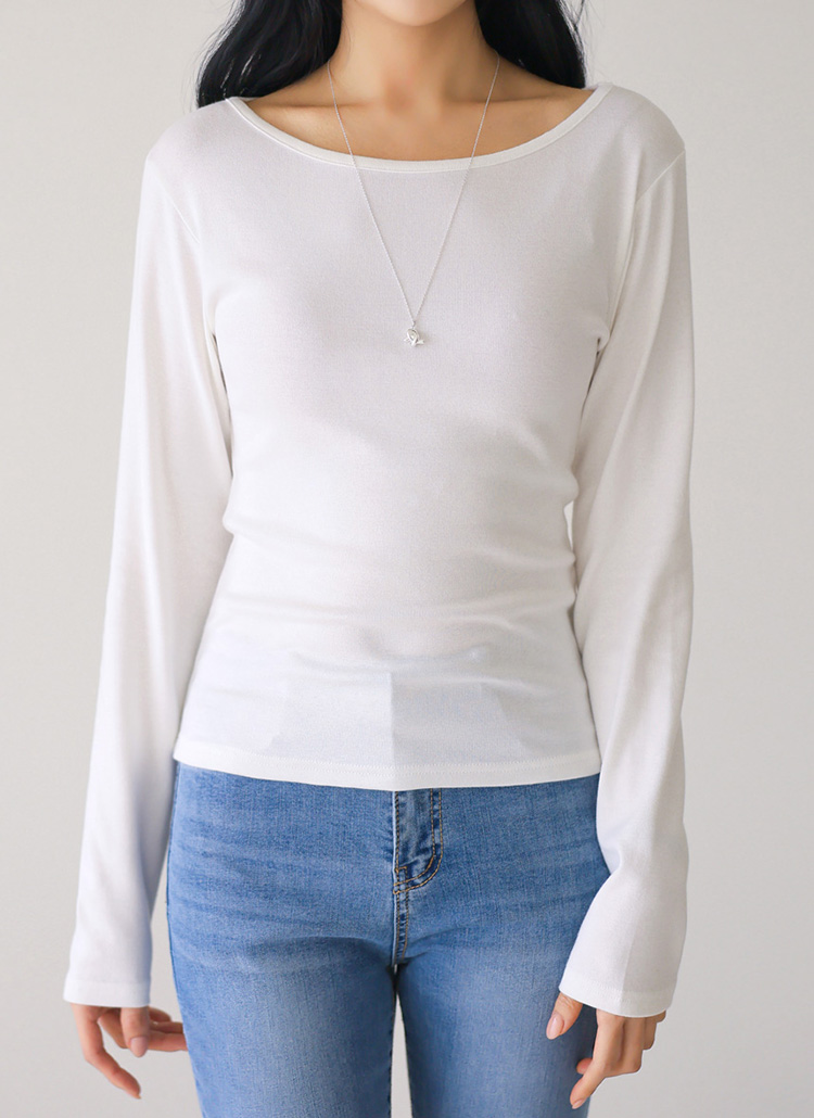 데일리하게 즐기기 좋은 세미보트넥 슬림 티셔츠예요 :)