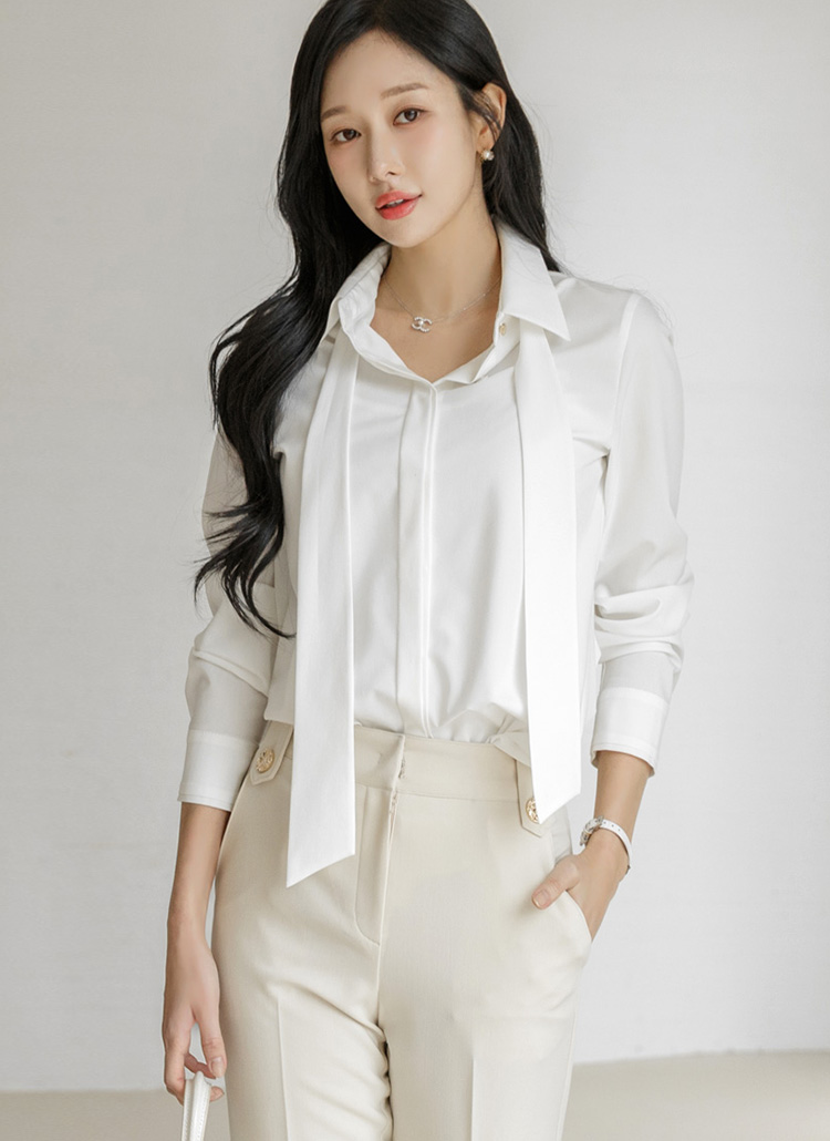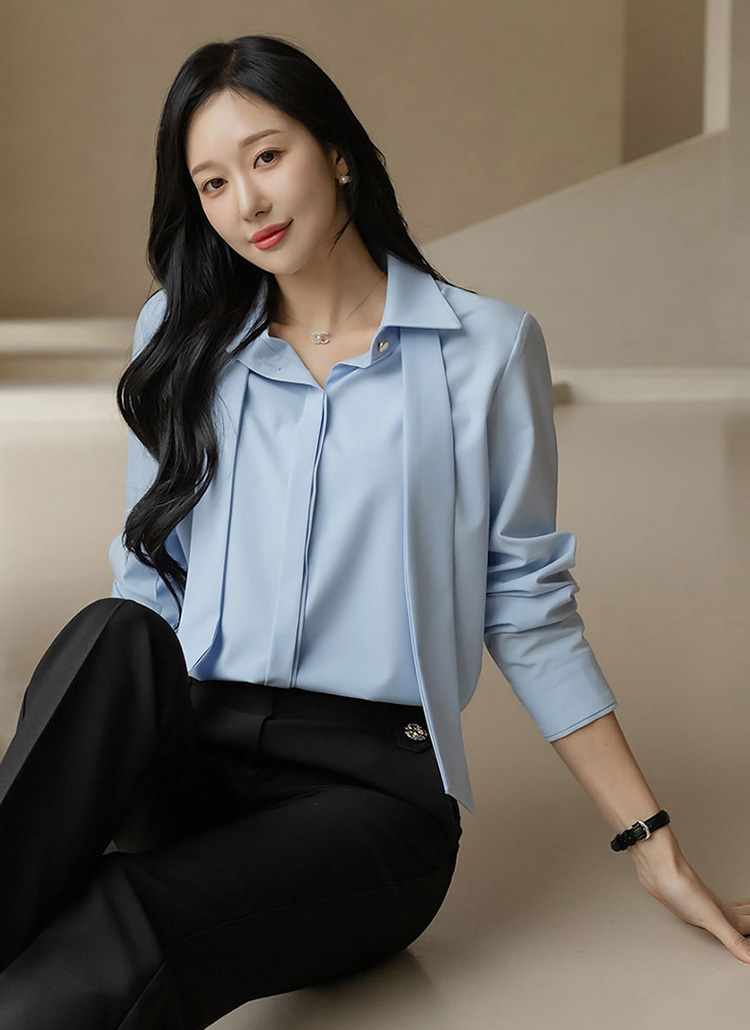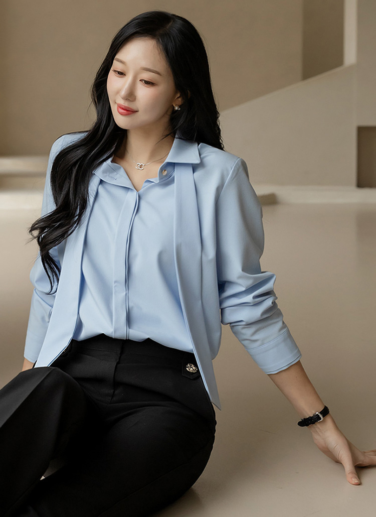 [LouisAngel] 하이프 리본 타이SET 경쾌한 핏 남방 셔츠 블라우스