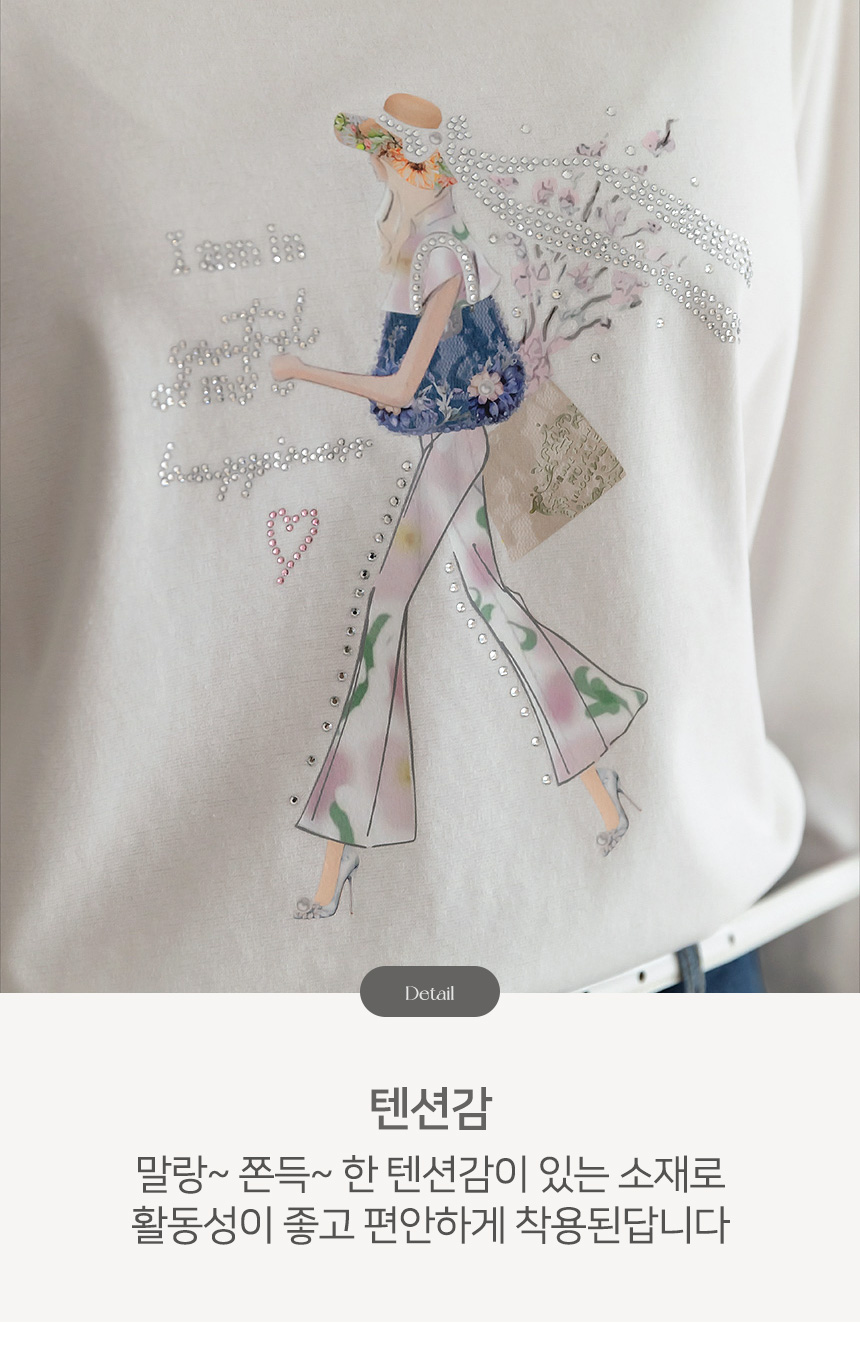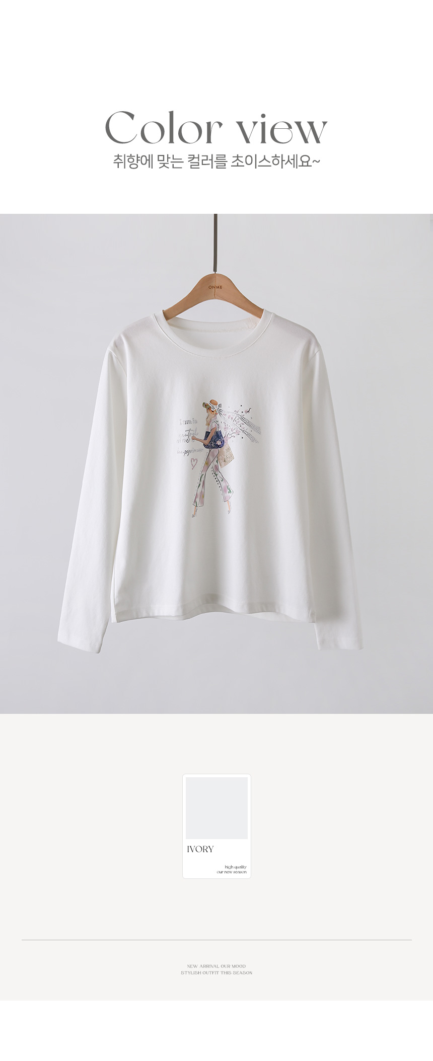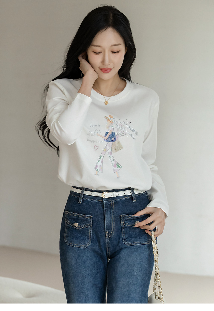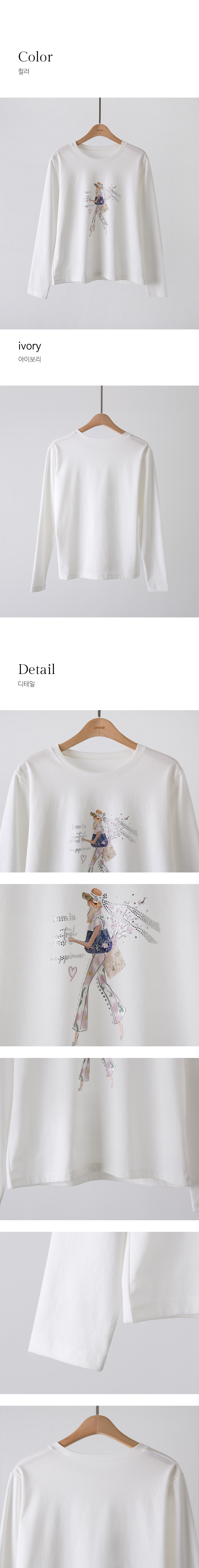 [LouisAngel] 에나린 스프링 걸 핫픽스 드로잉 프린팅 라운드 긴팔 티셔츠