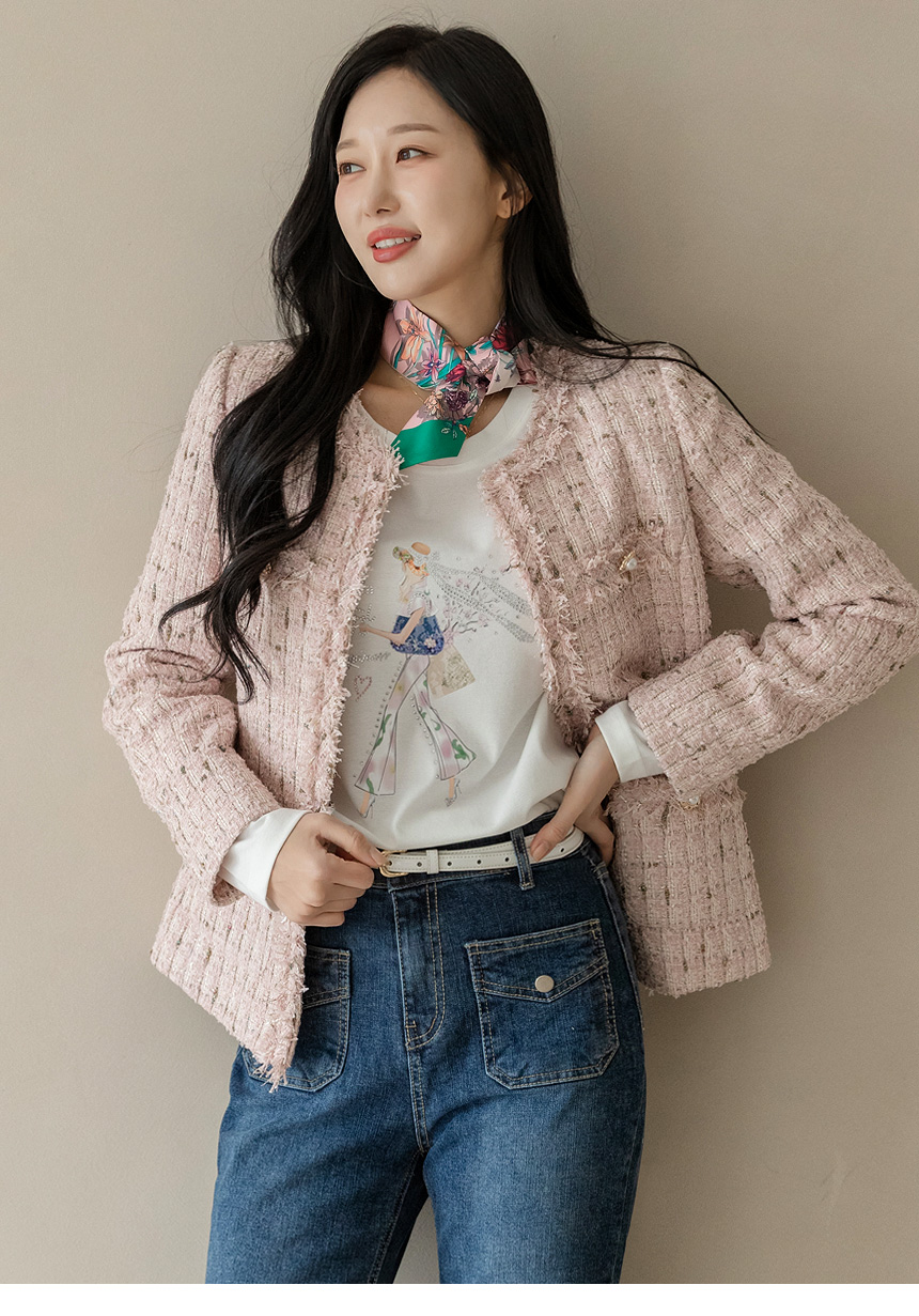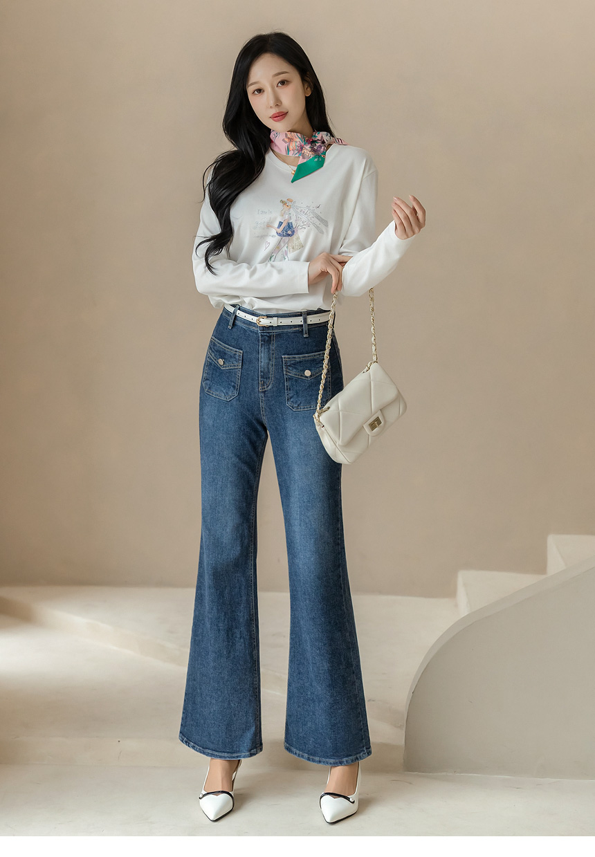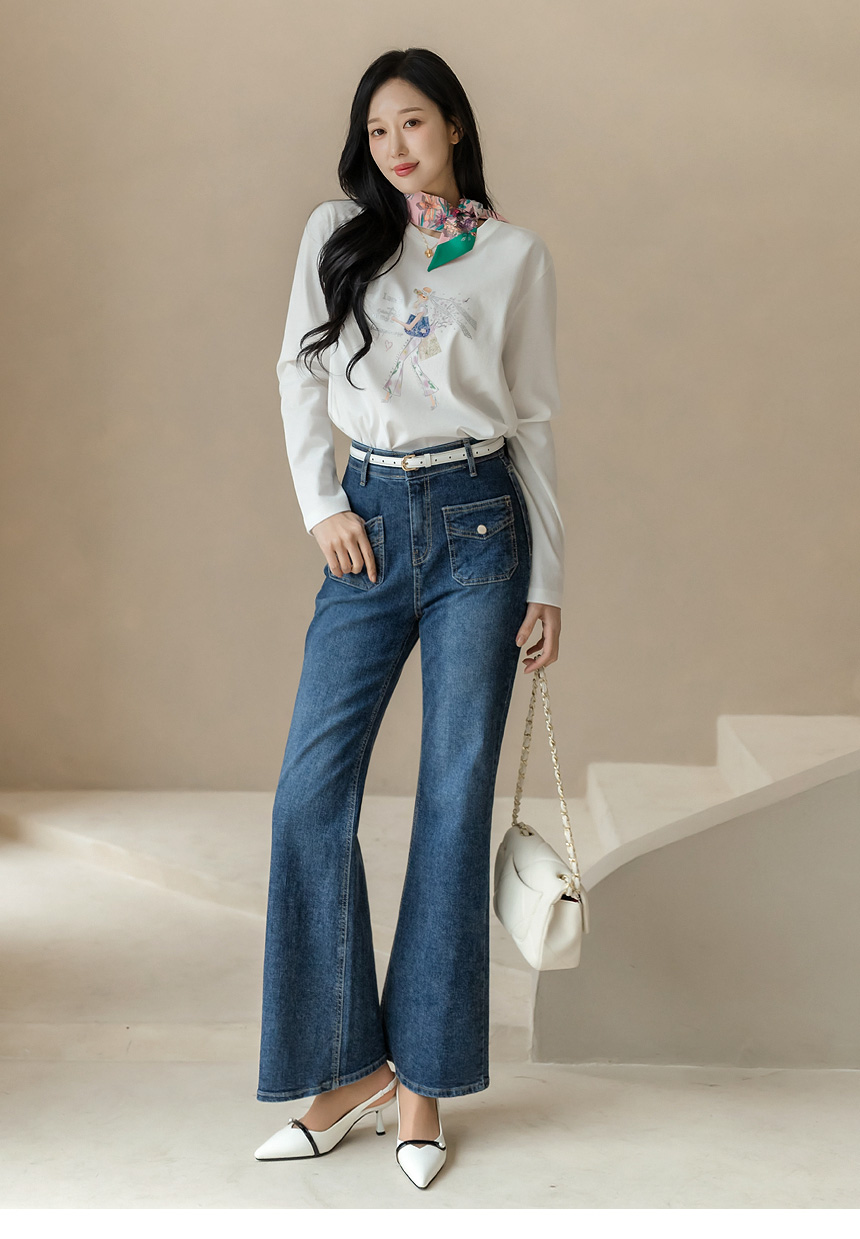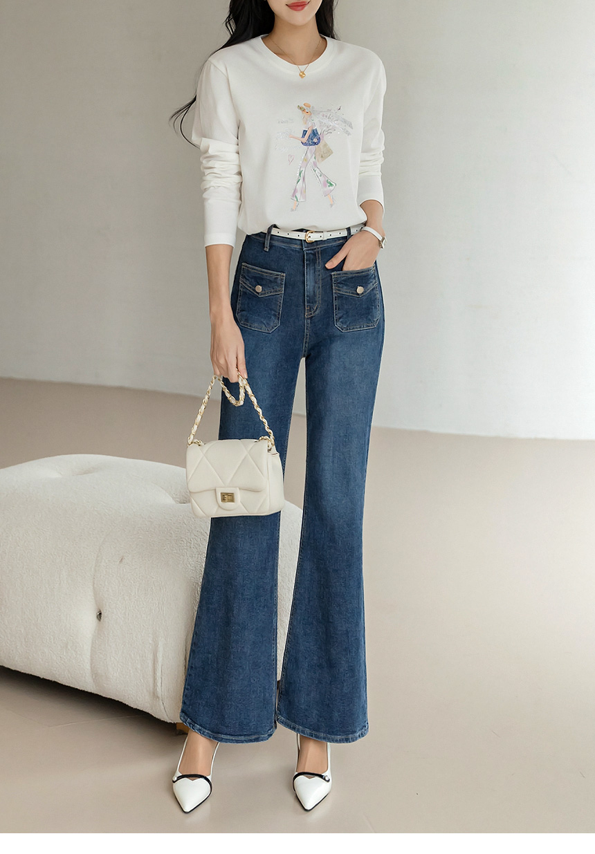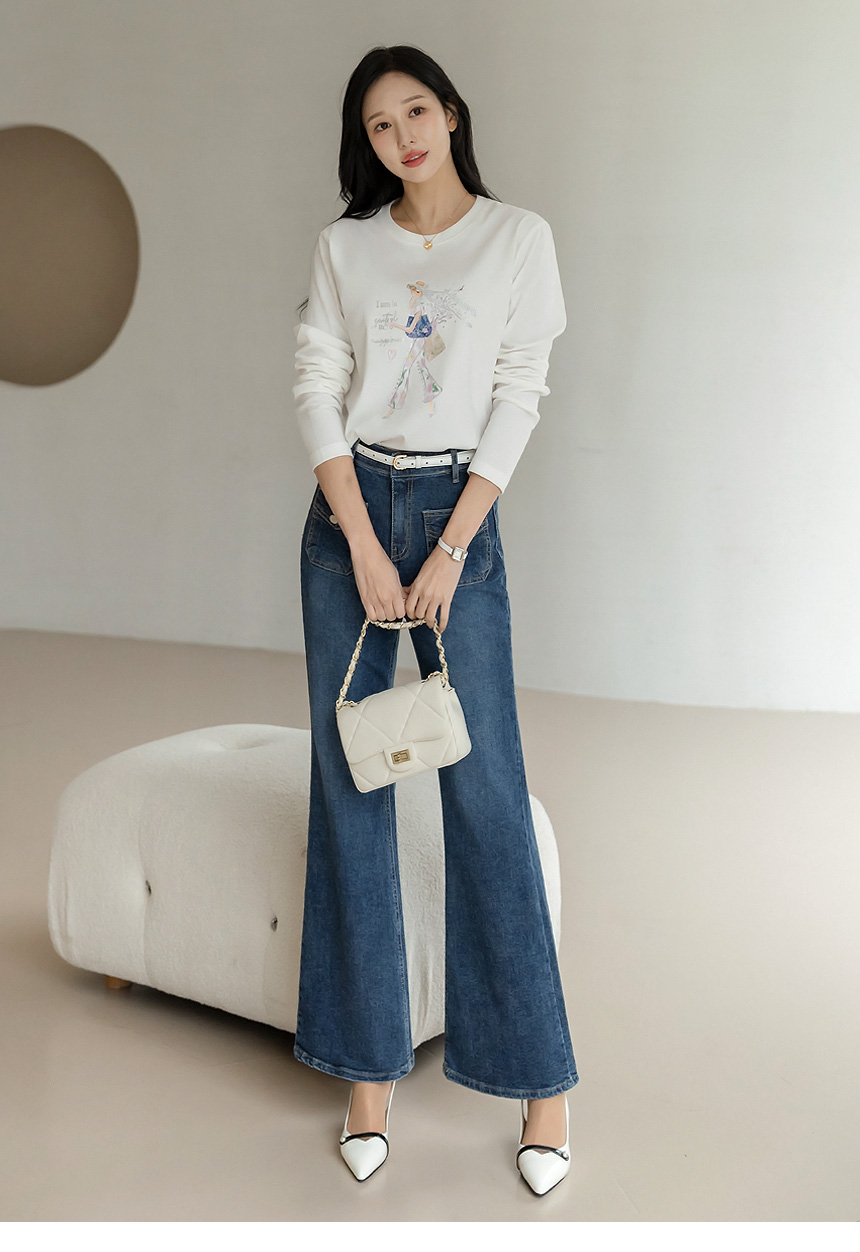 [LouisAngel] 에나린 스프링 걸 핫픽스 드로잉 프린팅 라운드 긴팔 티셔츠