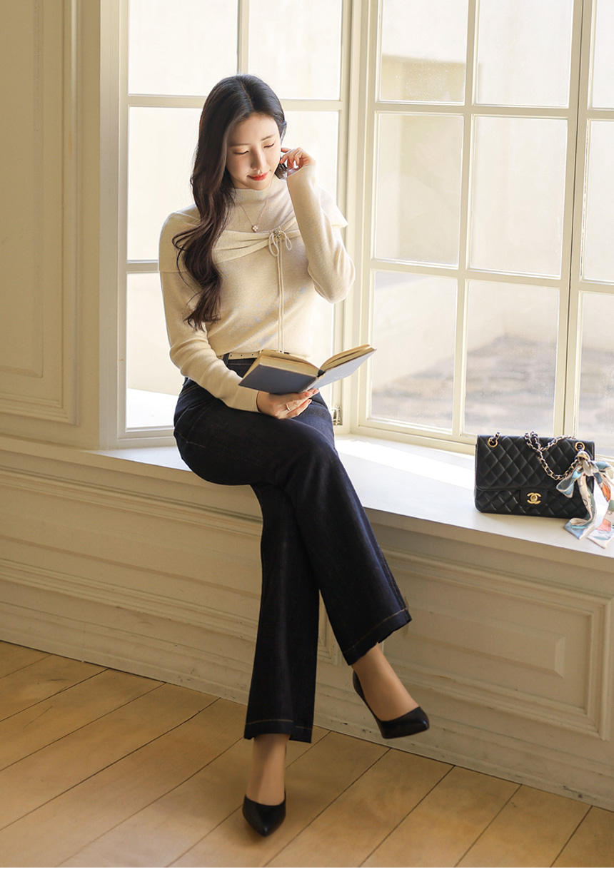 과하지 않은 부츠컷 라인으로 무릎 아래부터 자연스럽게 퍼지며