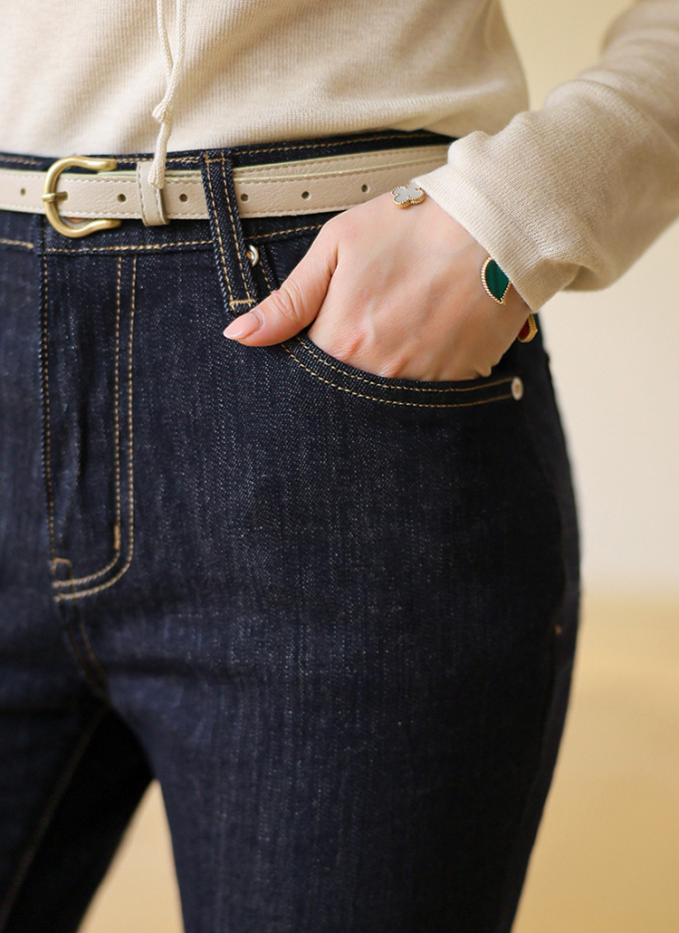 켈리트 히든밴딩 생지 진청 슬림 부츠컷 데님 팬츠