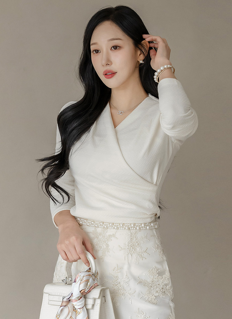 [LouisAngel] 파멜라 볼륨 랩 셔링 쟈가드 블라우스 티