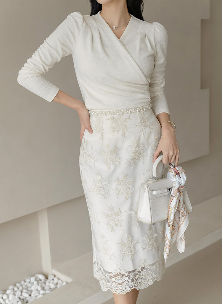 어깨와 허리 라인에 핀턱으로 섬세하게 잡아준 셔링 디테일이