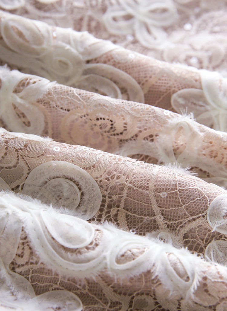 섬세하게 겹쳐진 레이스 디테일이 은은한 입체감을 만들어내며