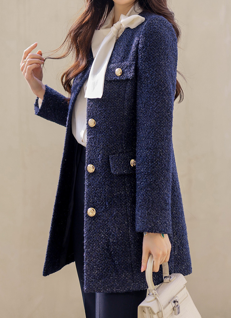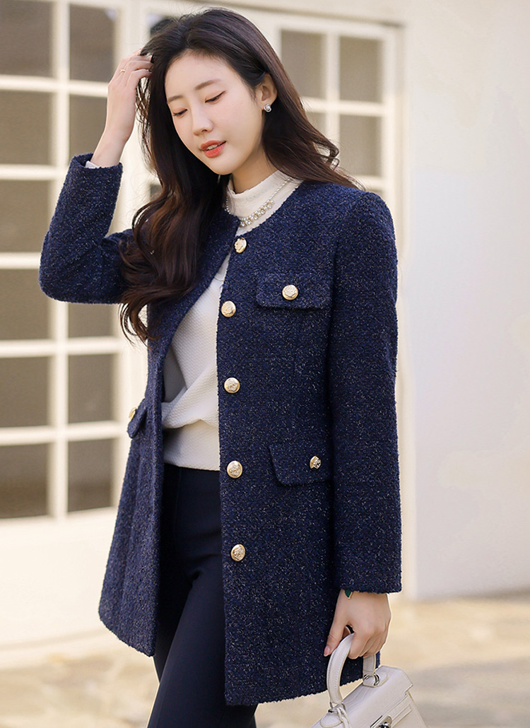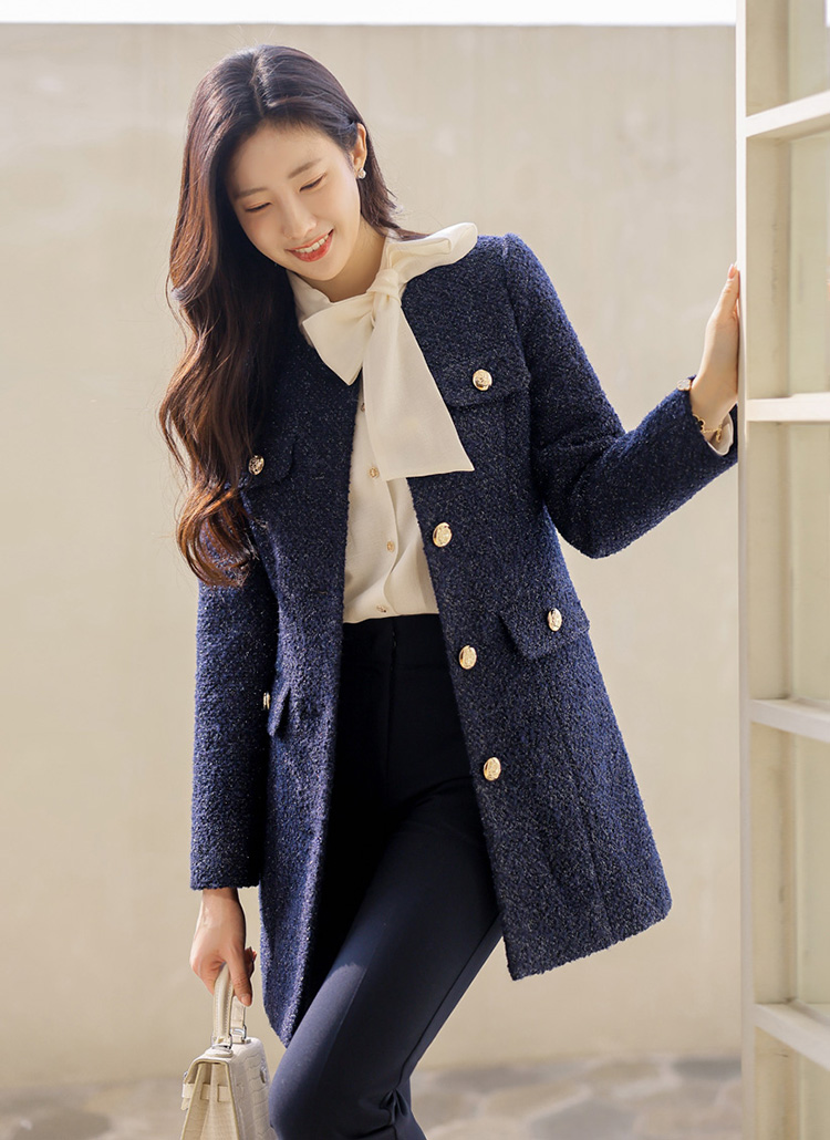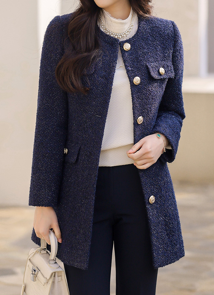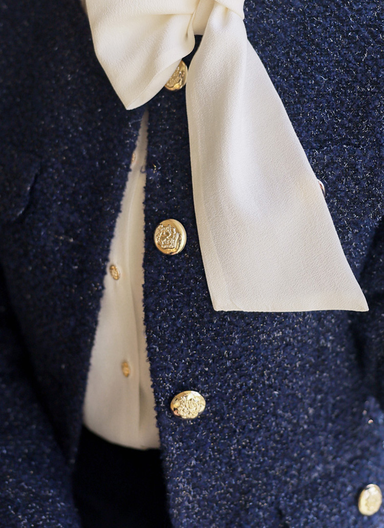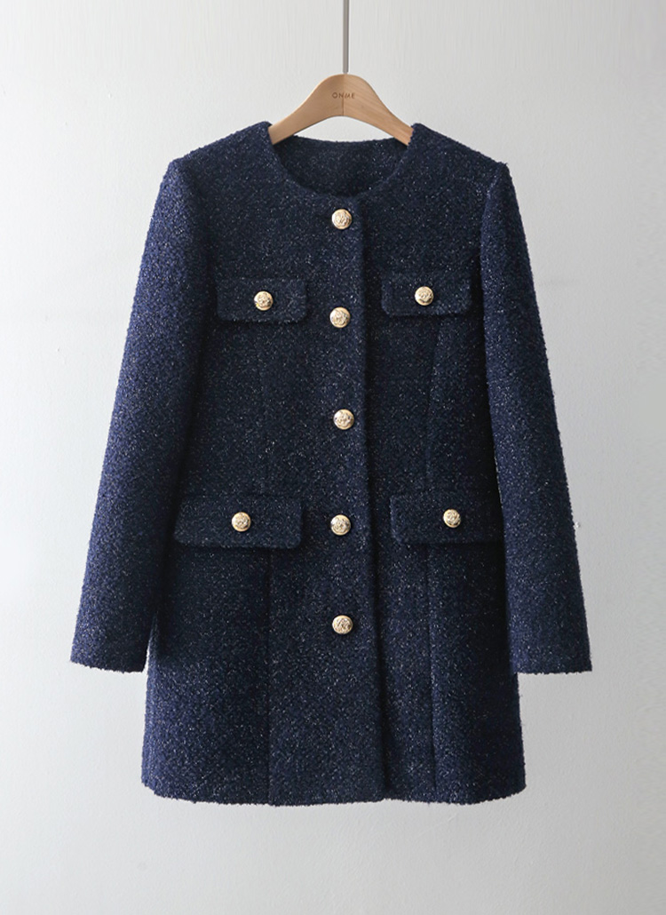 [LouisAngel] 엘레븐 플레인 펄 골드 버튼 울 블렌딩 하프 트위드 자켓