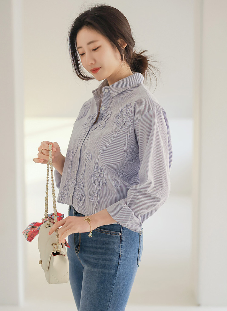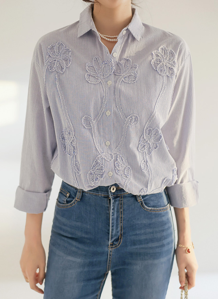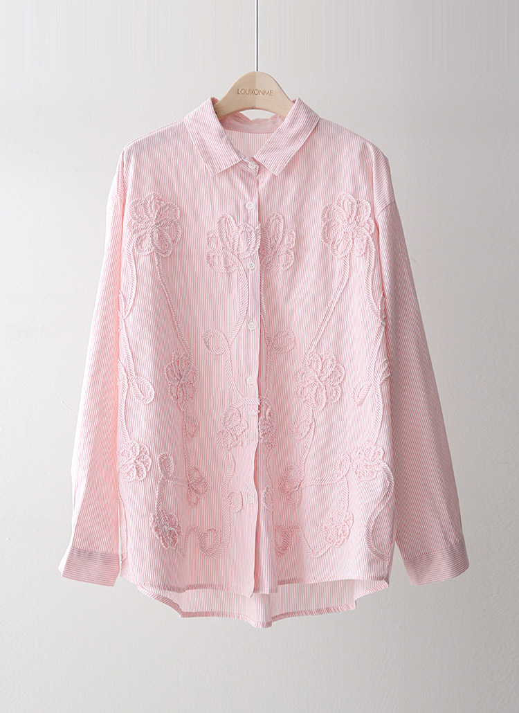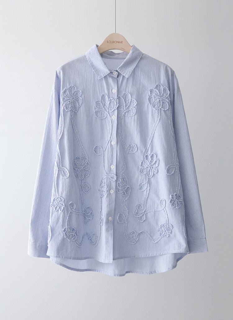 베라틴 플라워 쟈가드 세미 루즈 여리 스트라이프 셔츠 남방 블라우스