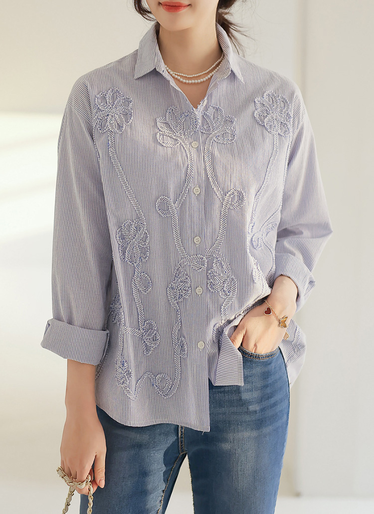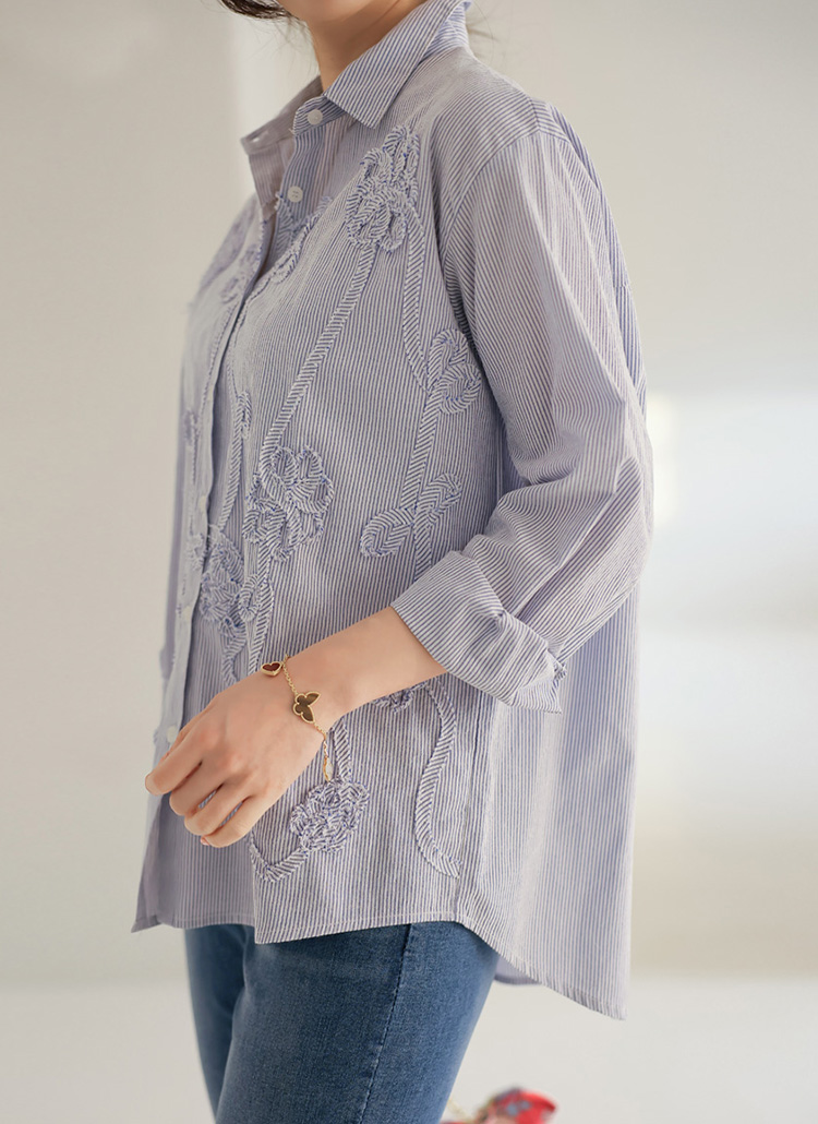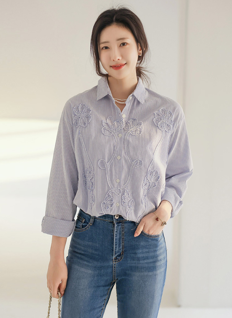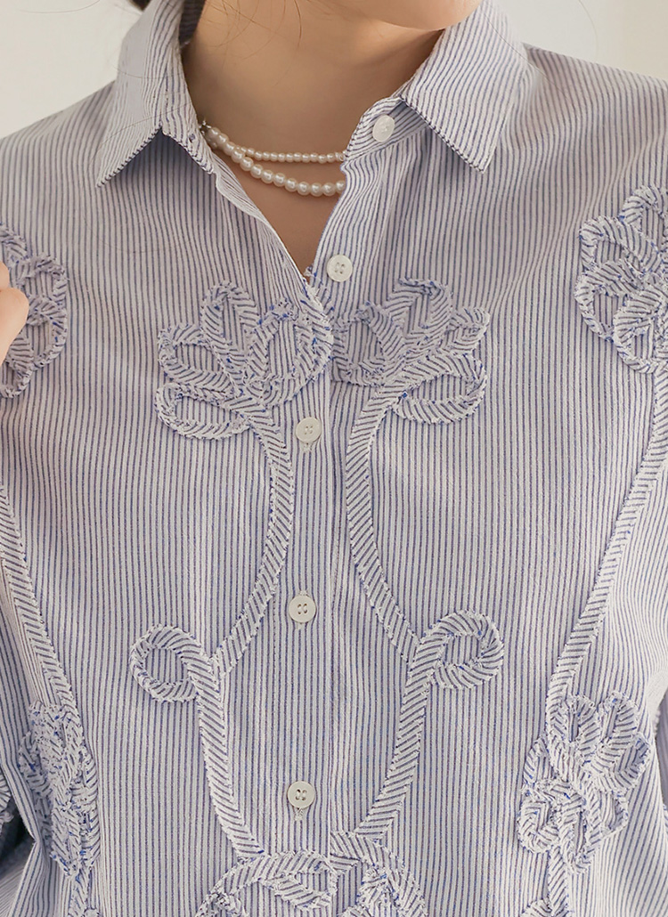 베라틴 플라워 쟈가드 세미 루즈 여리 스트라이프 셔츠 남방 블라우스
