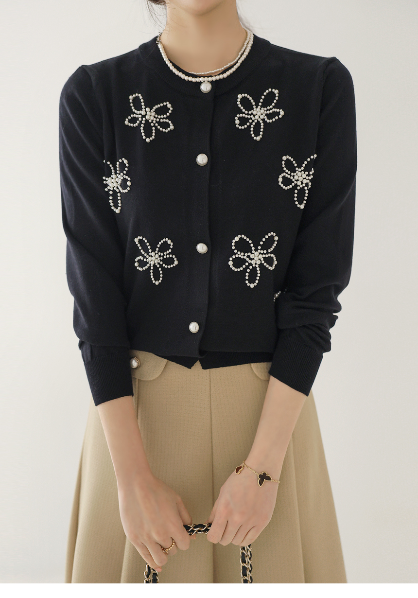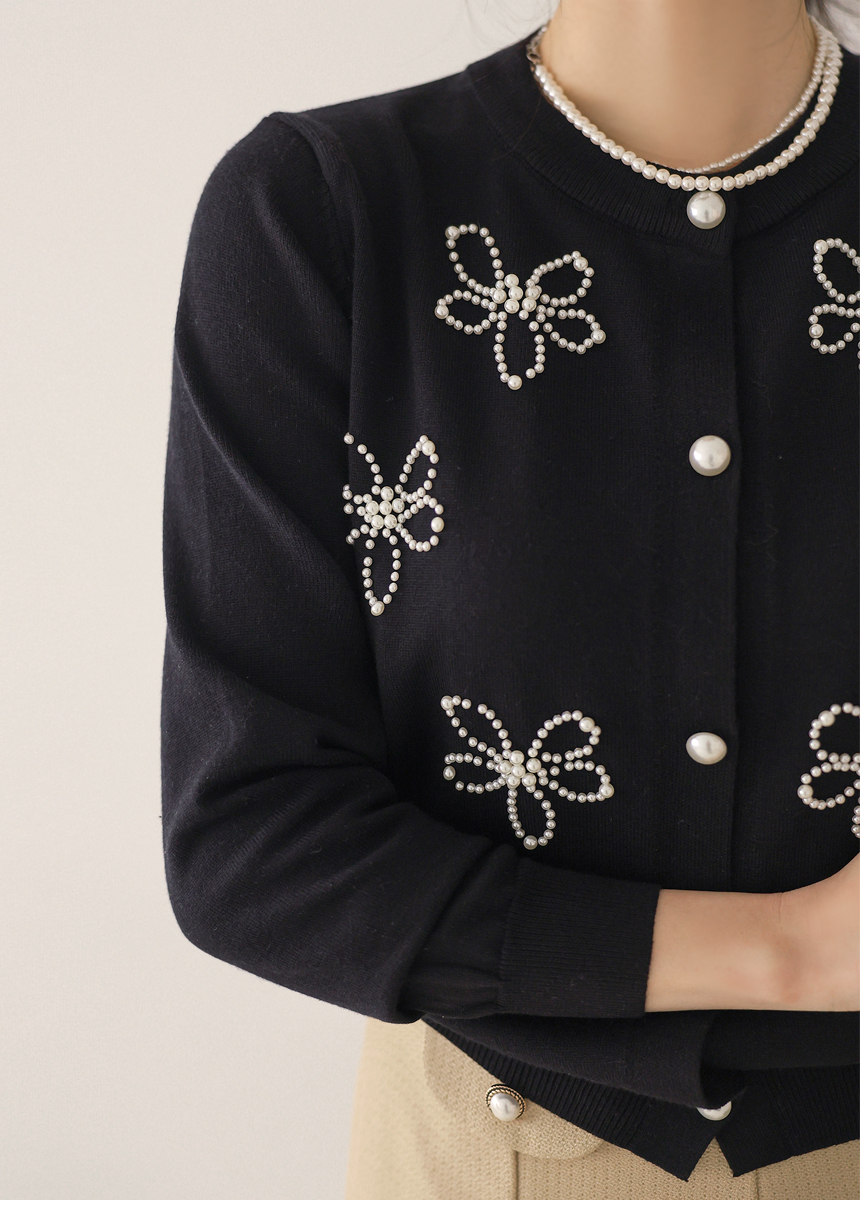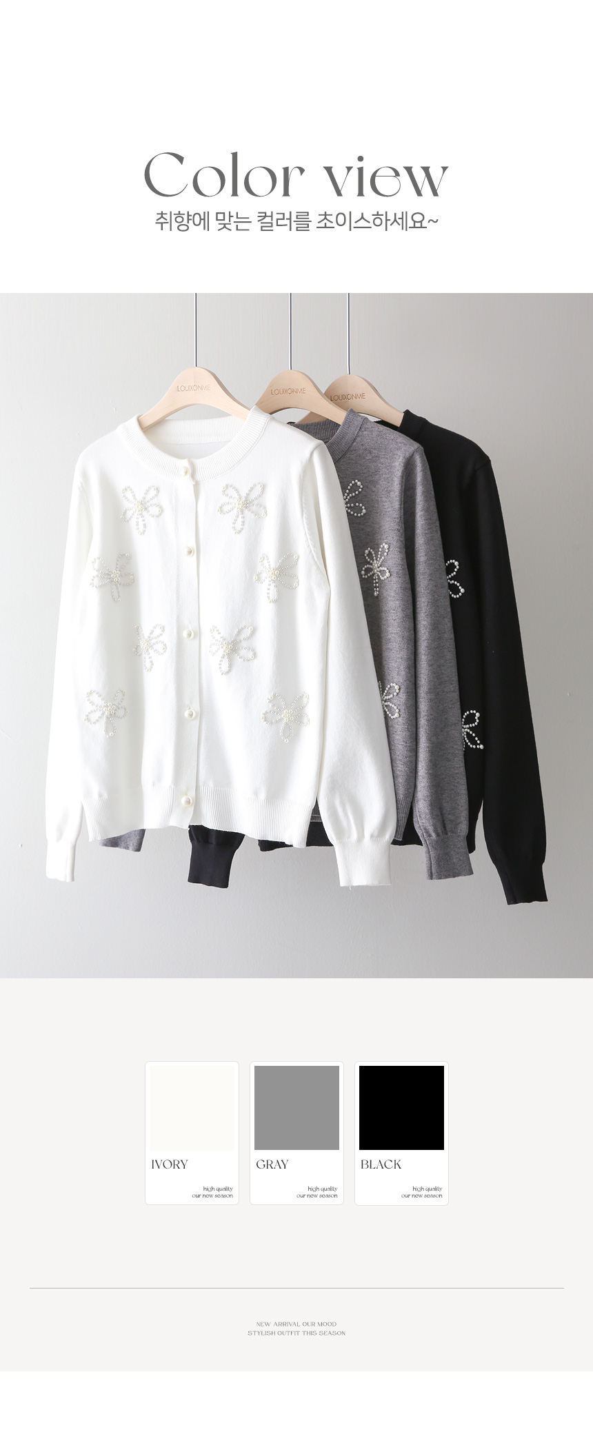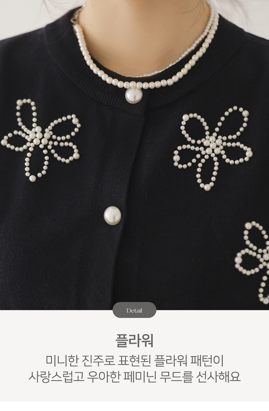 샤르미 봄빛 진주 플라워 라운드 니트 가디건