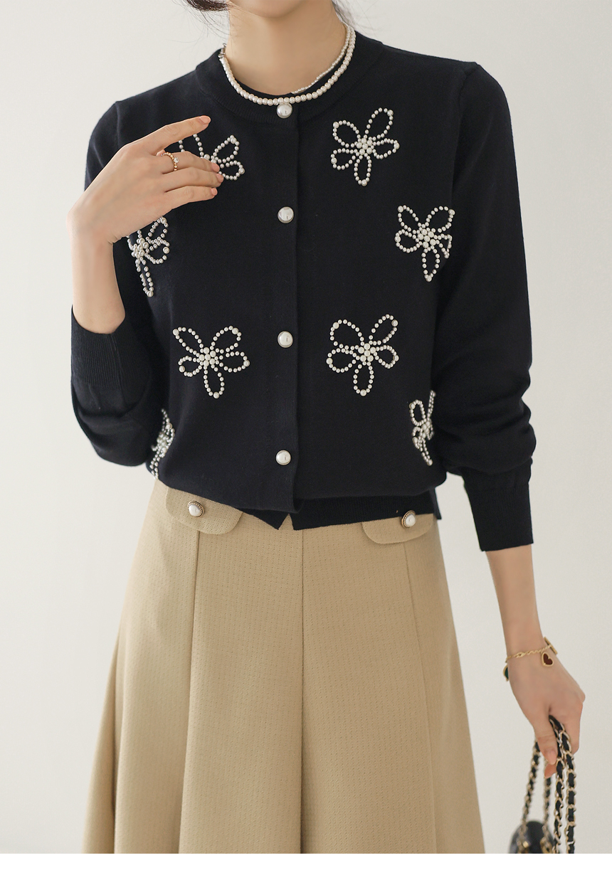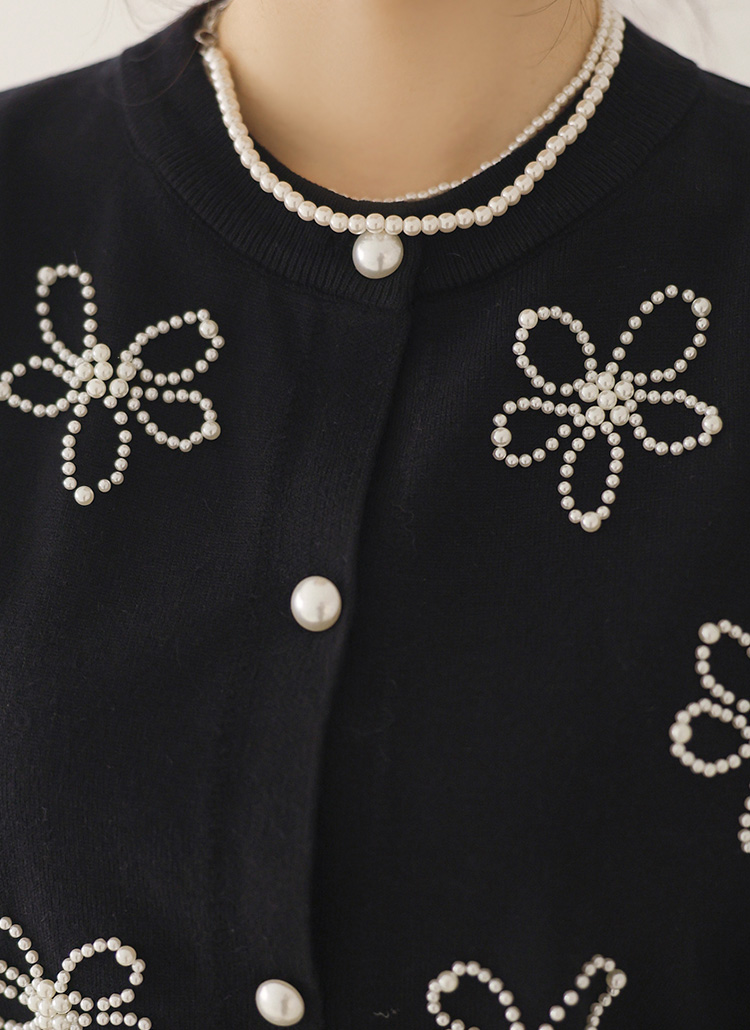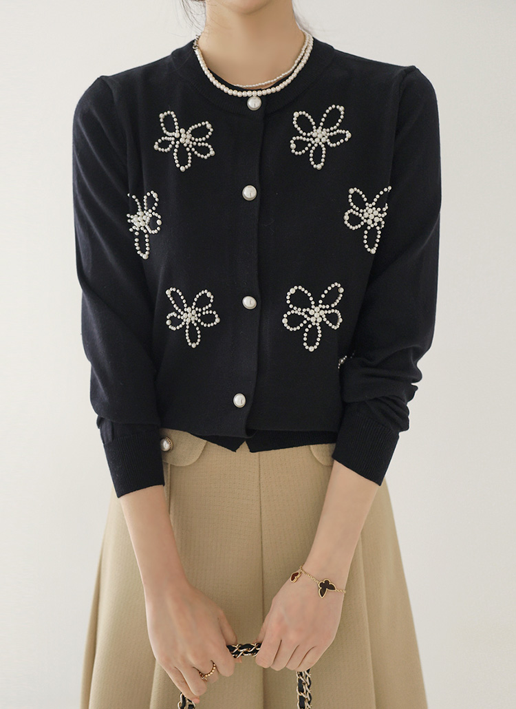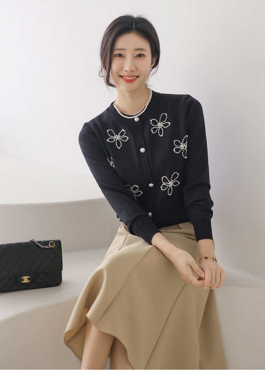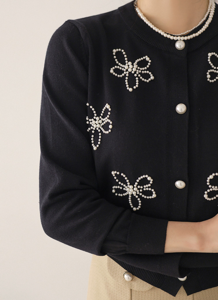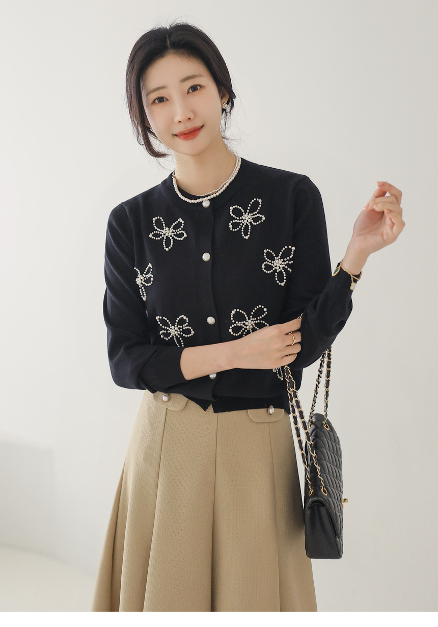 샤르미 봄빛 진주 플라워 라운드 니트 가디건