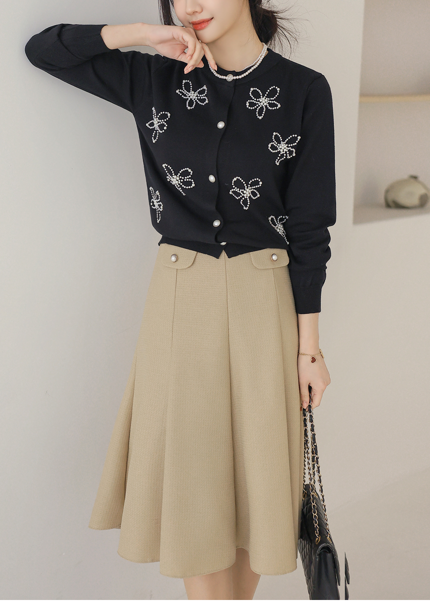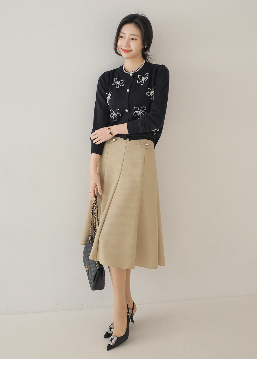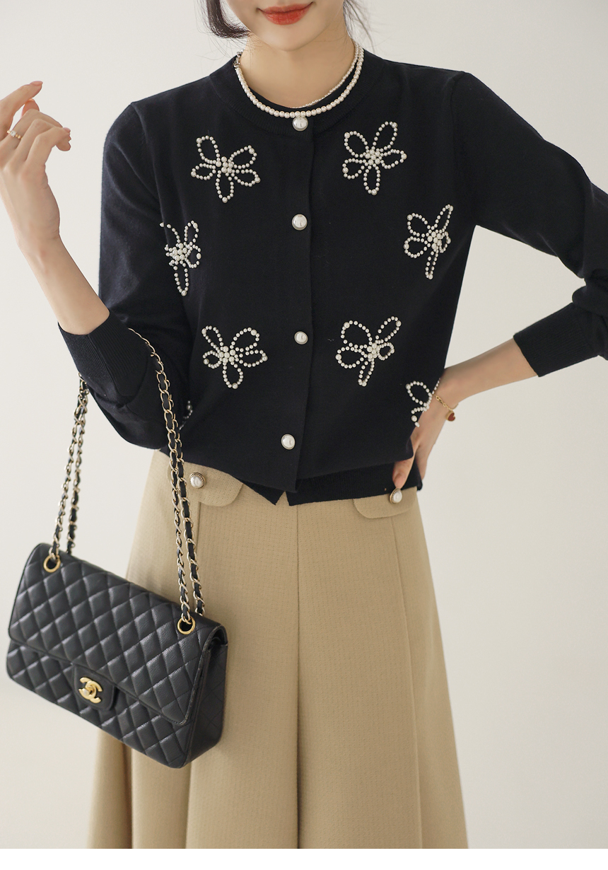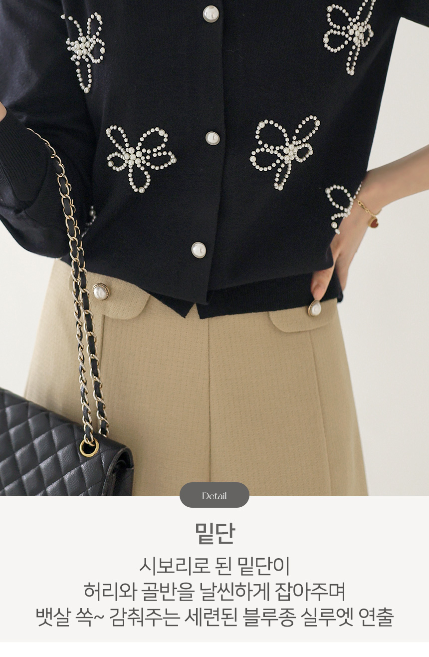 샤르미 봄빛 진주 플라워 라운드 니트 가디건