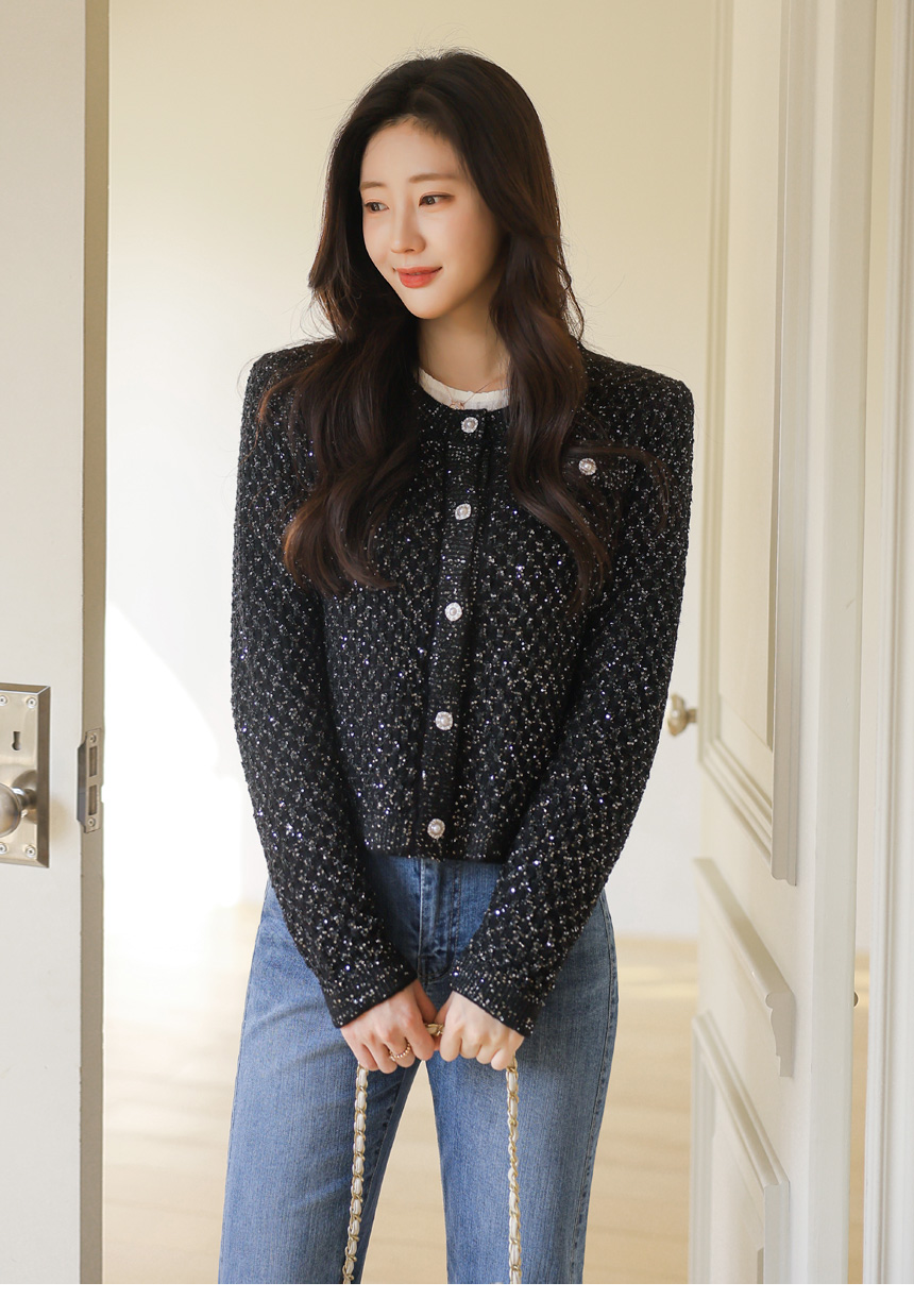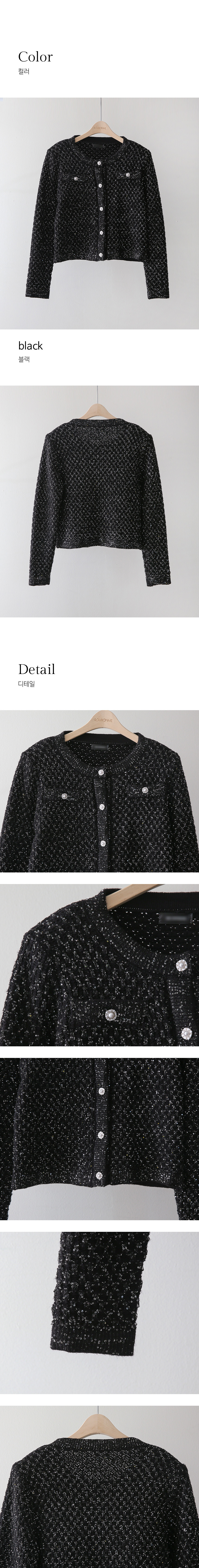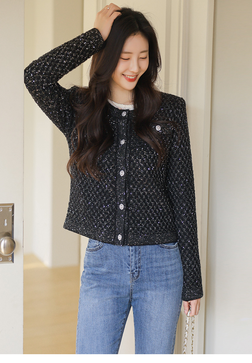 레일리 펄 스팽글 다이아 체크 패턴 니트 가디건