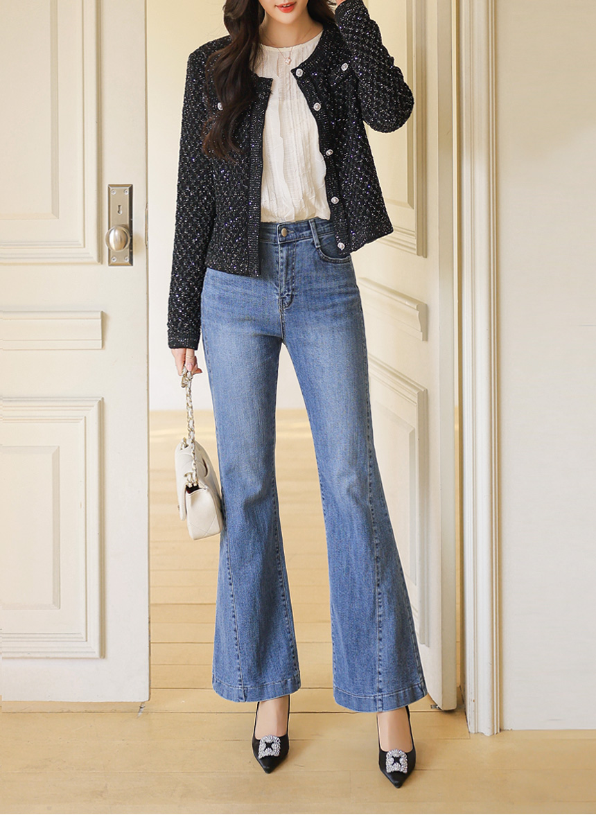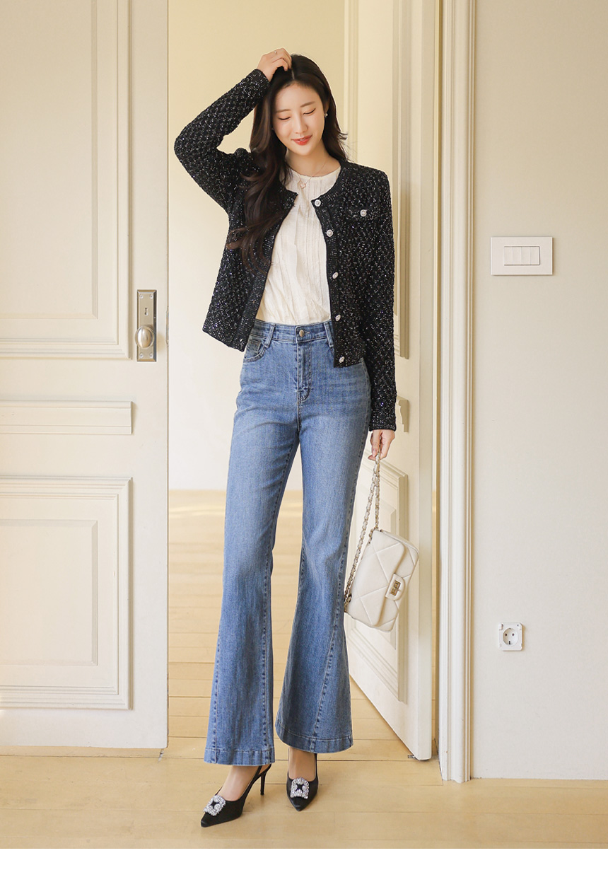 세미 크롭 기장으로 허리선을 산뜻하게 정리해주어